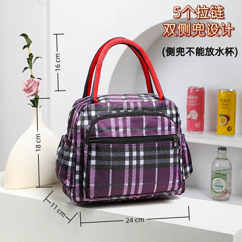 📚 多层拉链网红防水布包高档五层拉链妈咪包手拎袋宝妈包午餐便当袋
