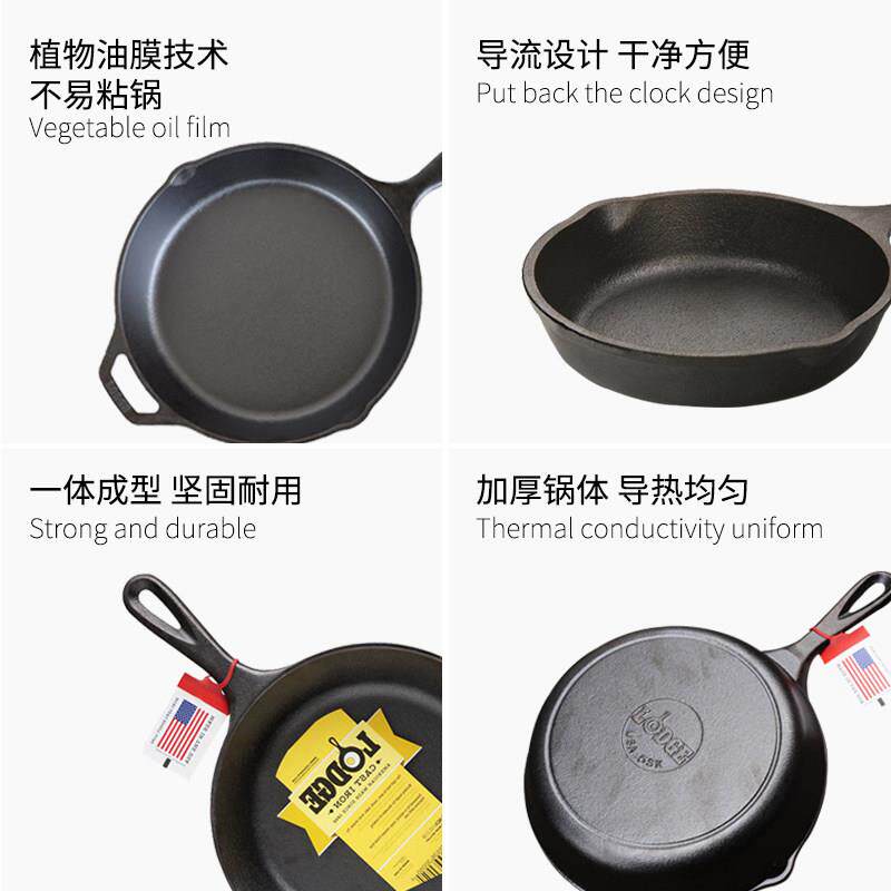 📚 Lodge美国进口无涂层不易粘锅铸铁锅牛排煎锅炒锅平底锅通用13-38