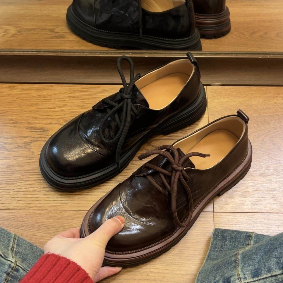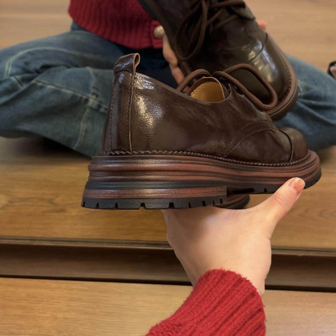 📚 34-42全真皮高质感【四季百搭】小皮鞋圆头粗跟厚底单鞋女英伦风