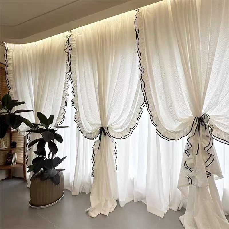 📚 金源纺织新款纱帘花边带黑边双层花边法式风格窗帘配件立边