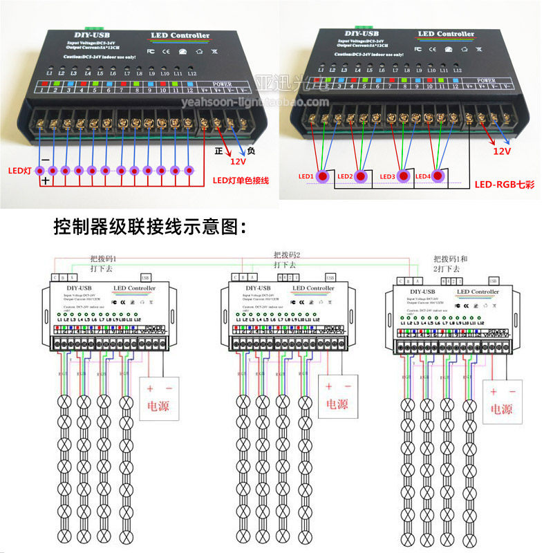 📚 LED单色七彩灯带12路可编程渐变来回跑马控制器12v发光字灯箱24v