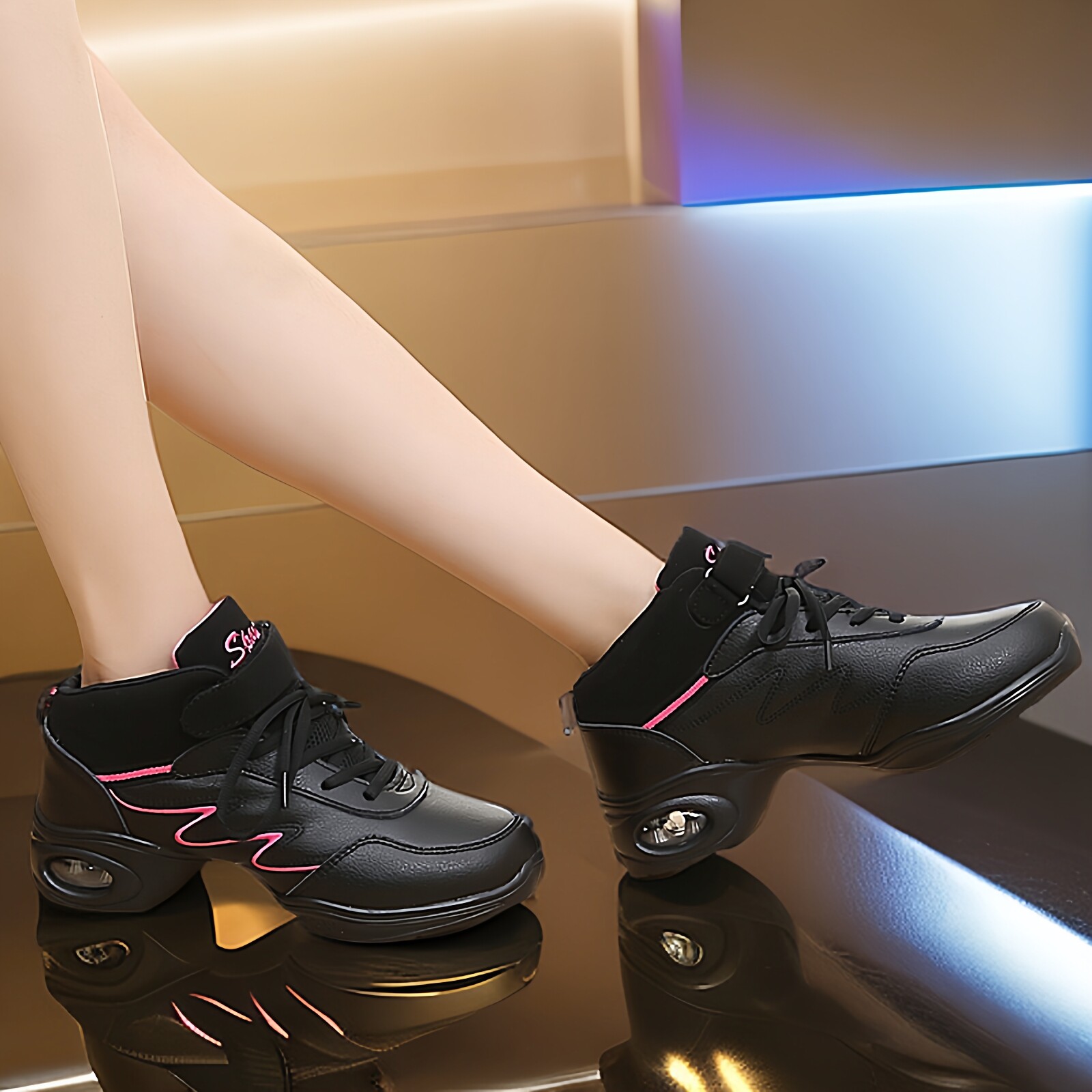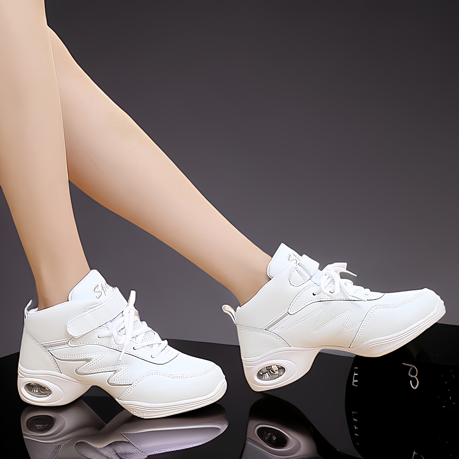 📚 白色舞蹈鞋女广场舞鞋真皮增高女鞋软底爵士带中跟跳舞鞋冬季防滑