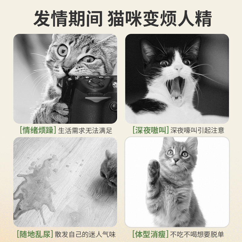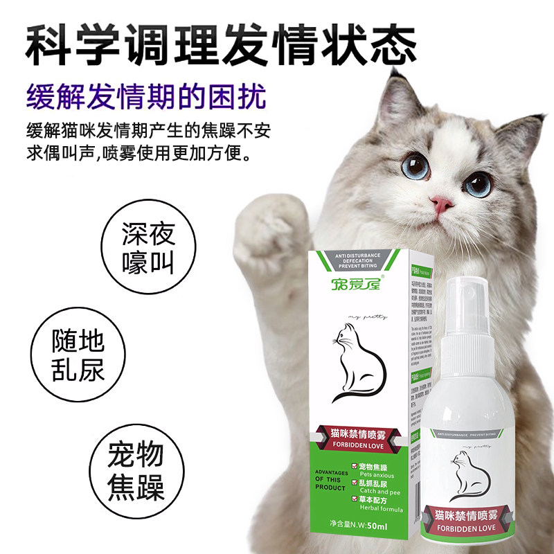 📚 猫咪绝禁发情粉公母猫育情欲调节情绪非药抑制猫乱嚎叫专用喷雾剂