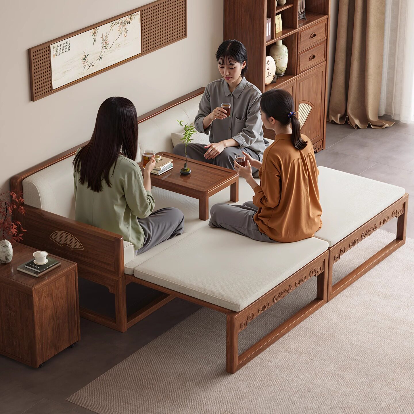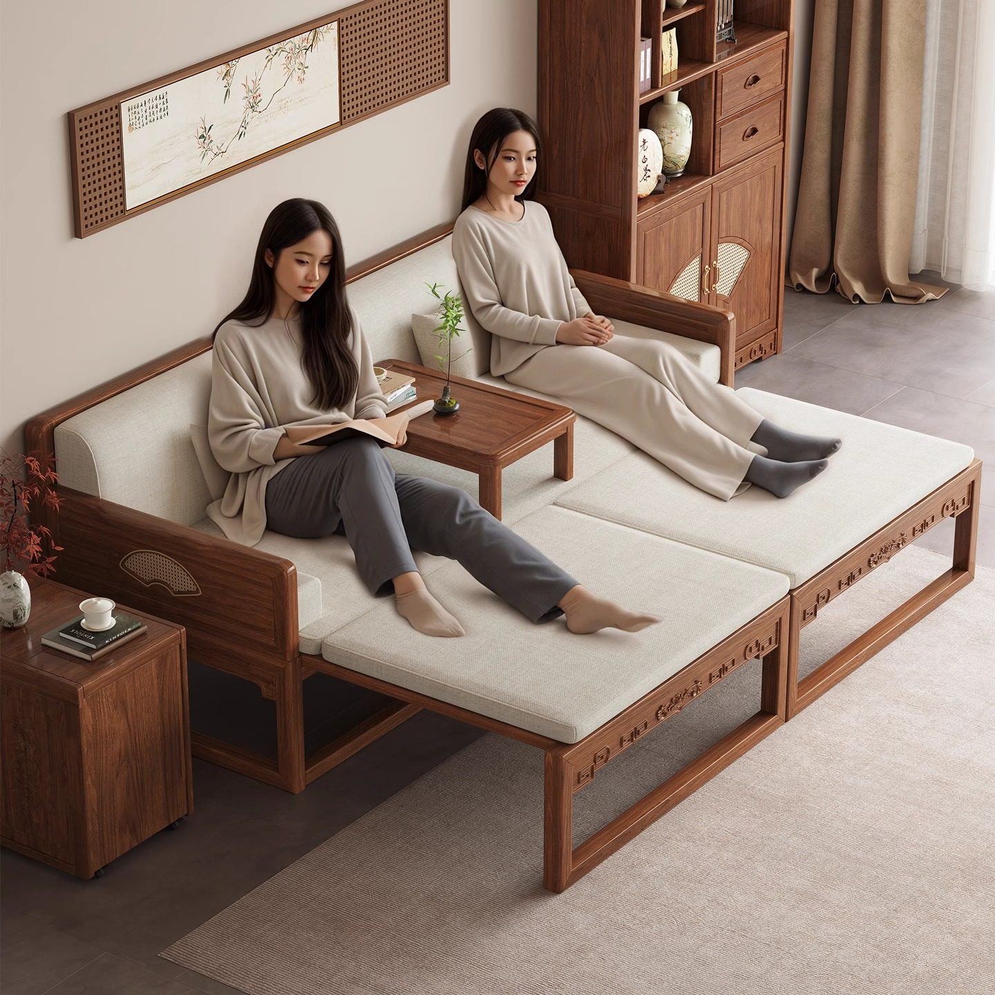 📚 一林半舍新中式老榆木罗汉床禅意卧榻小户型客厅全实木沙发床两用