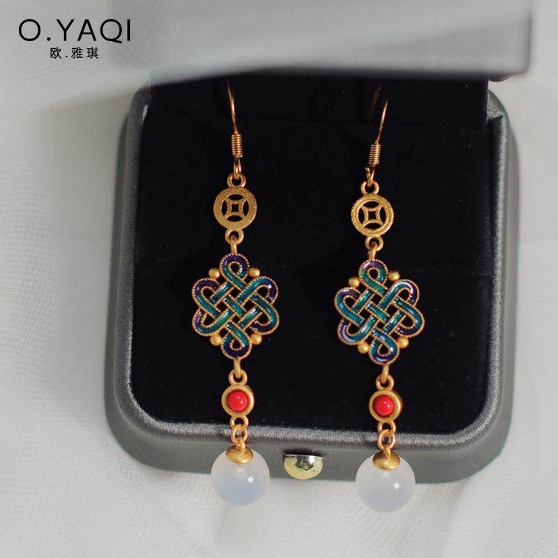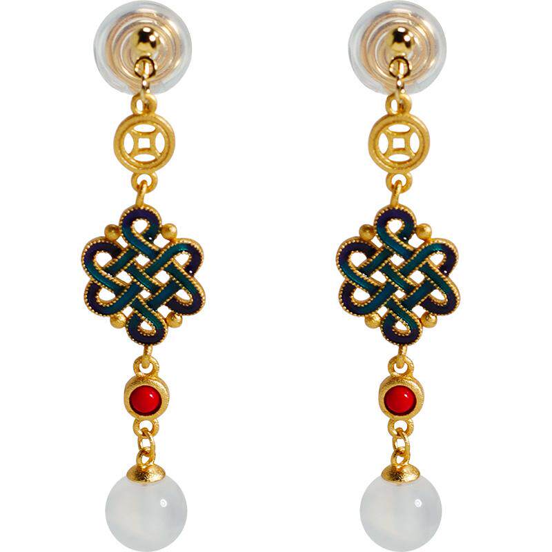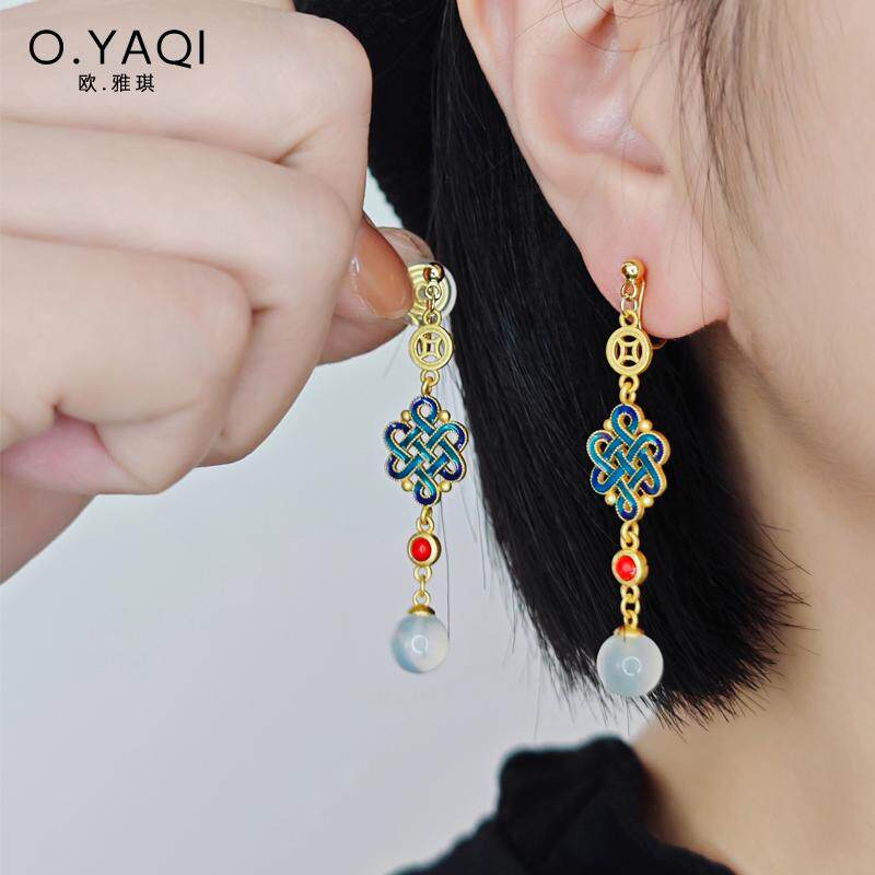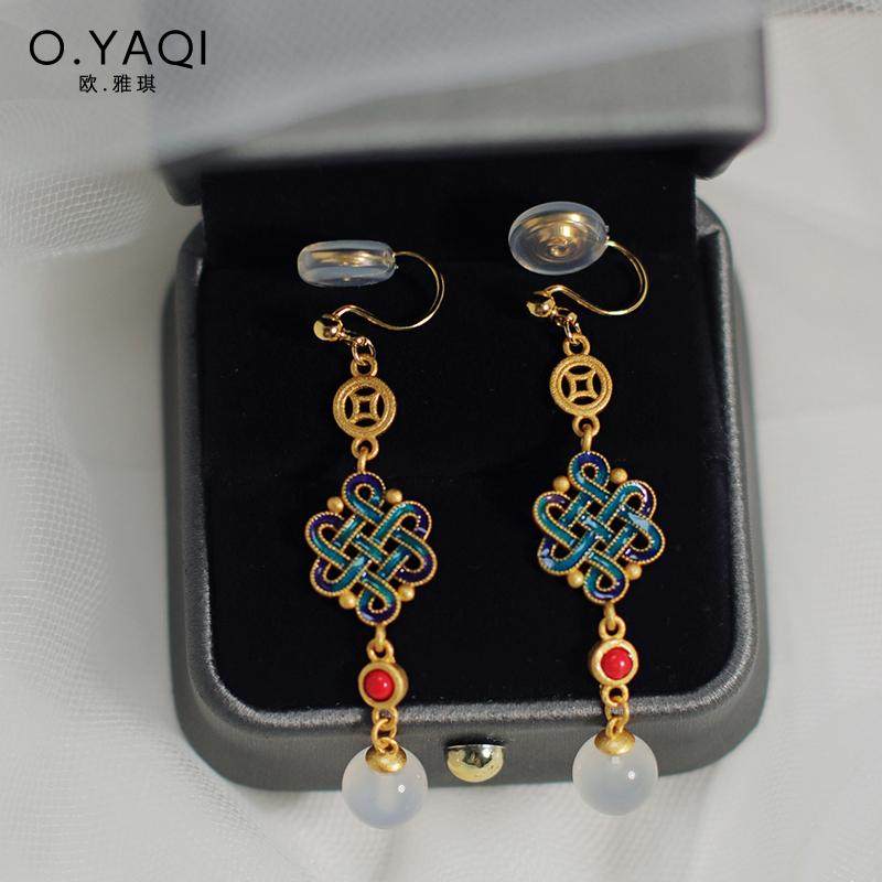 📚 无耳洞国风中国结白玛瑙蚊香盘耳夹复古耳钩耳环新中式古法女耳饰