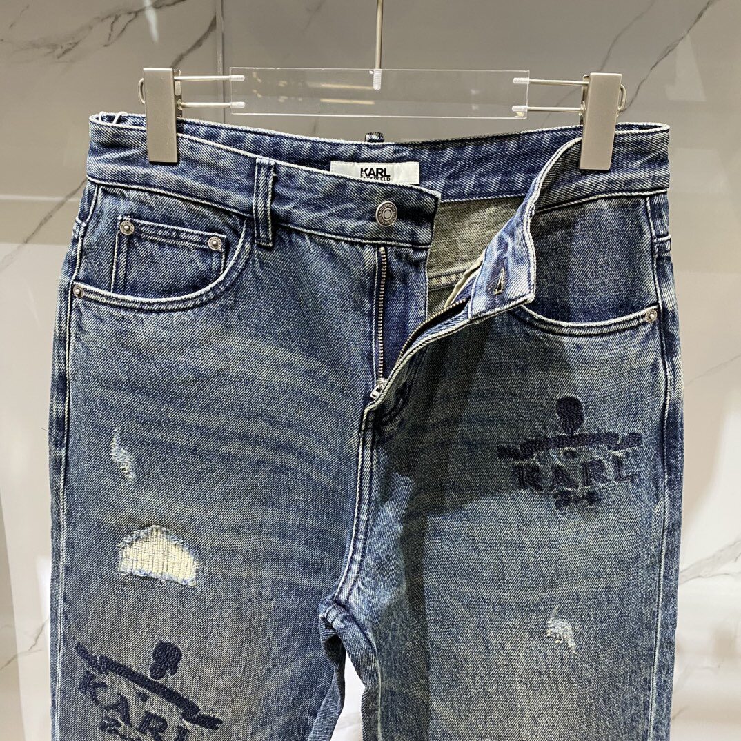 📚 Karl Lagerfeld 25秋冬老佛爷logo字母刺绣补丁男士直筒牛仔裤