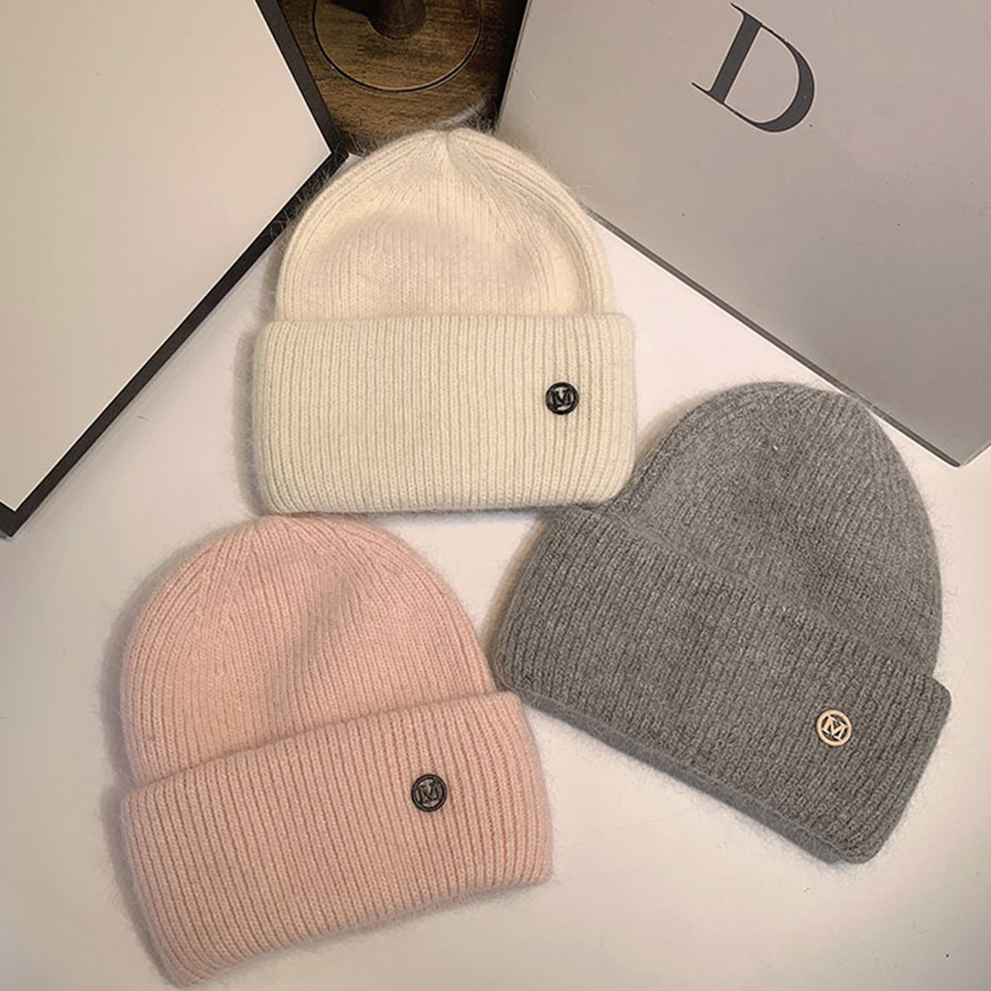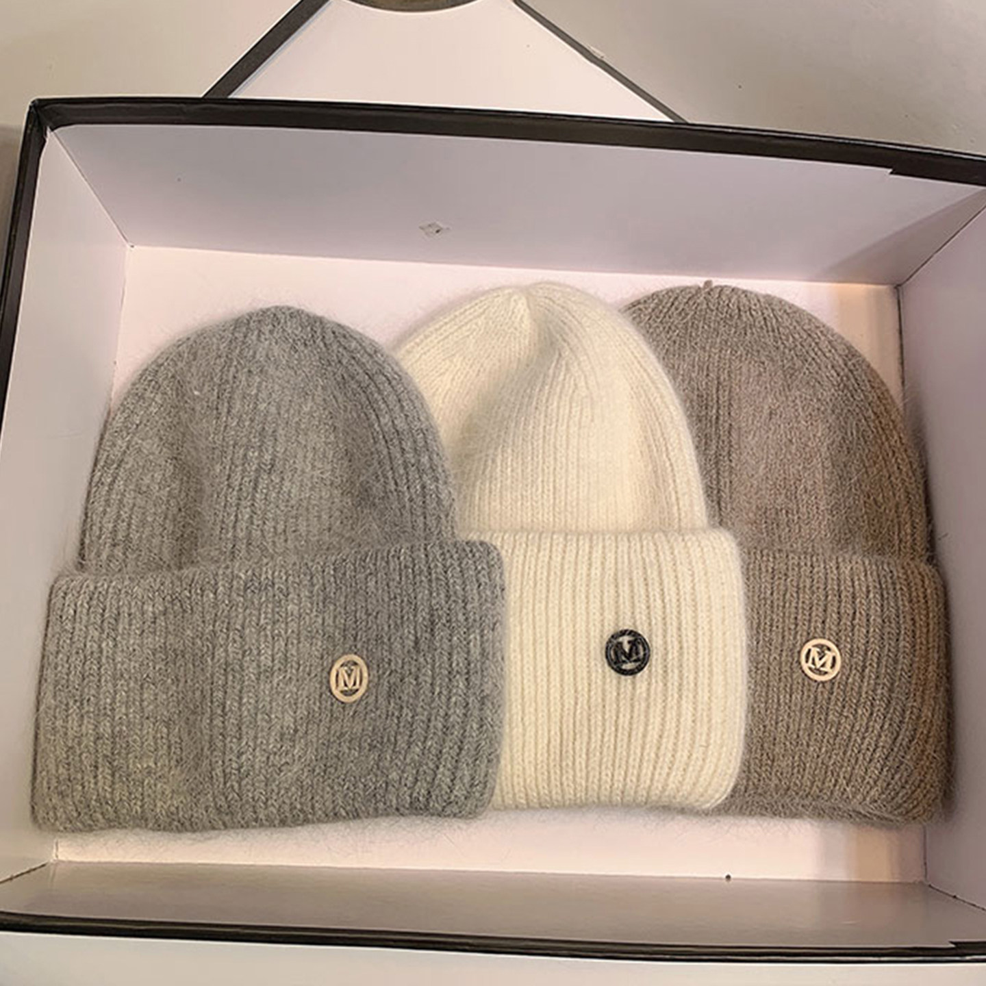 📚 韩系ins字母M标针织帽子女冬季加厚防寒百搭毛线帽情侣包头帽冷帽