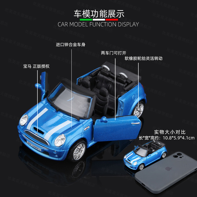 📚 比美高1:32宝马迷你小跑车模型mini cooper合金小汽车玩具车男孩