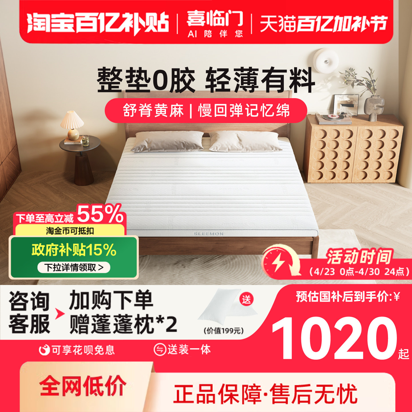 📚 【白骑士slim】喜临门儿童乳胶黄麻记忆棉0胶偏硬新榻榻米薄床垫
