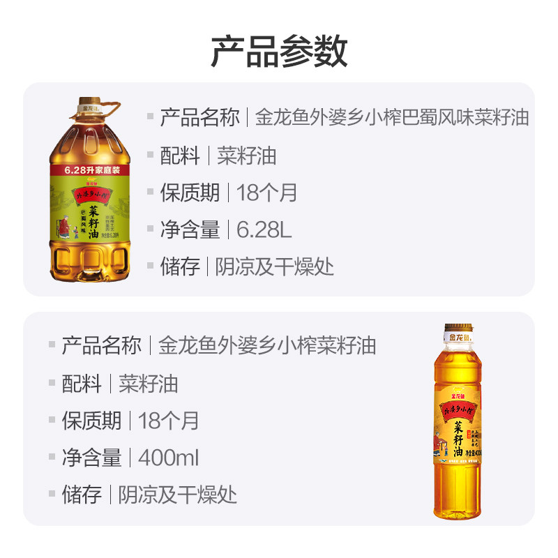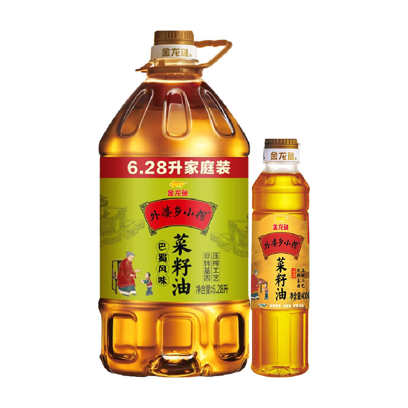 📚 金龙鱼外婆乡小榨巴蜀风味菜籽油6.28L/桶+菜籽油400ml/瓶