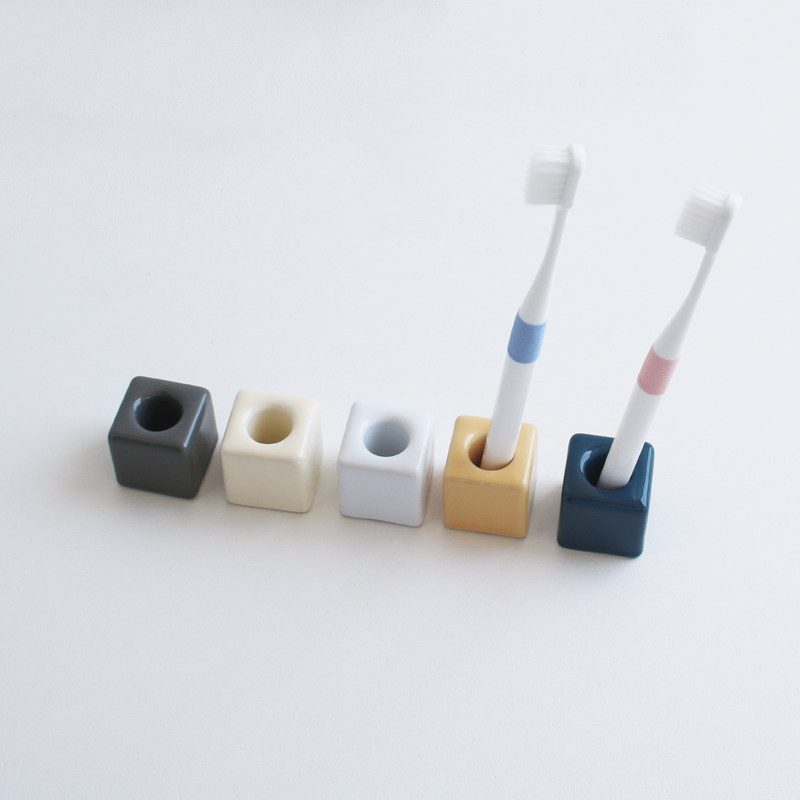 📚 简约陶瓷放牙刷收纳架手动剃须刀刮胡刀置物架浴室牙刷托牙刷底座