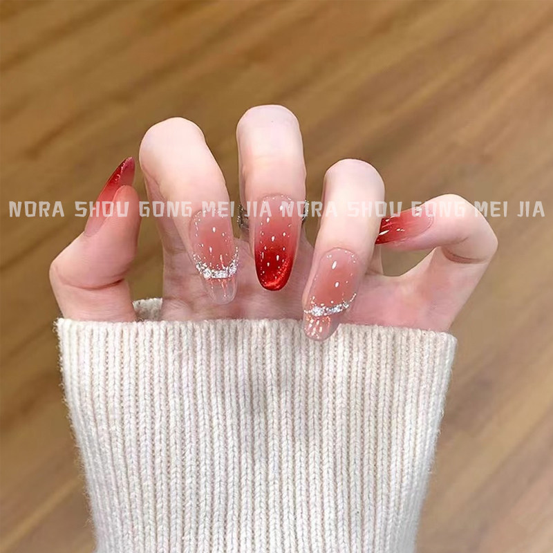 📚 巨显白红宝石猫眼穿戴美甲2026新年战甲纯手工定制持久中长指甲贴