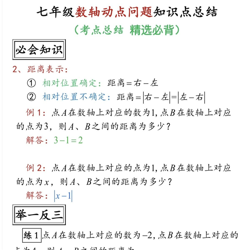 📚 25秋新七年级上册数学数轴动点问题专项练习知识点每日一练小纸条