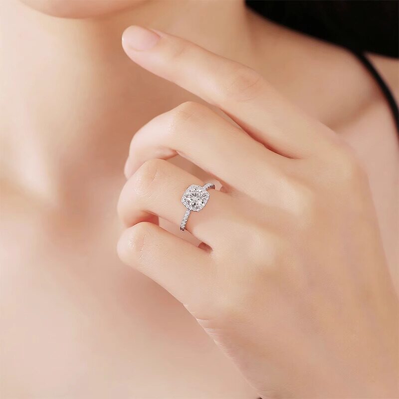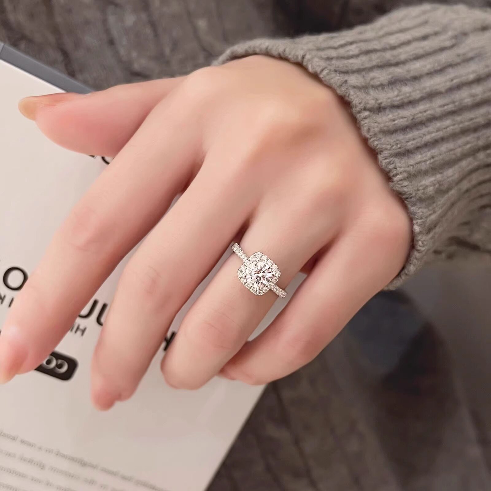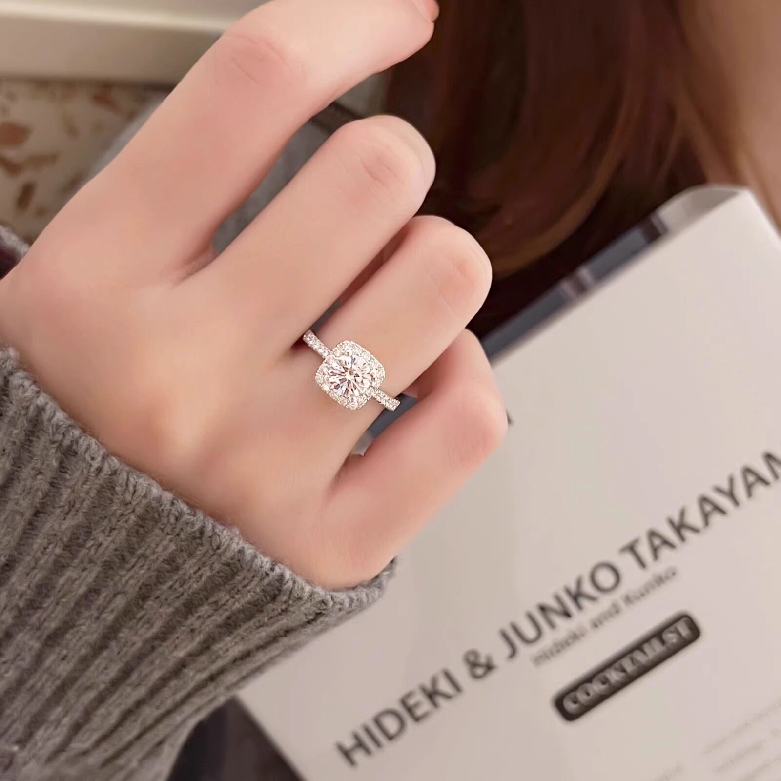 📚 IGI河南培育钻石Pt950铂金钻戒方包群钻微镶1克拉求婚戒指送女友