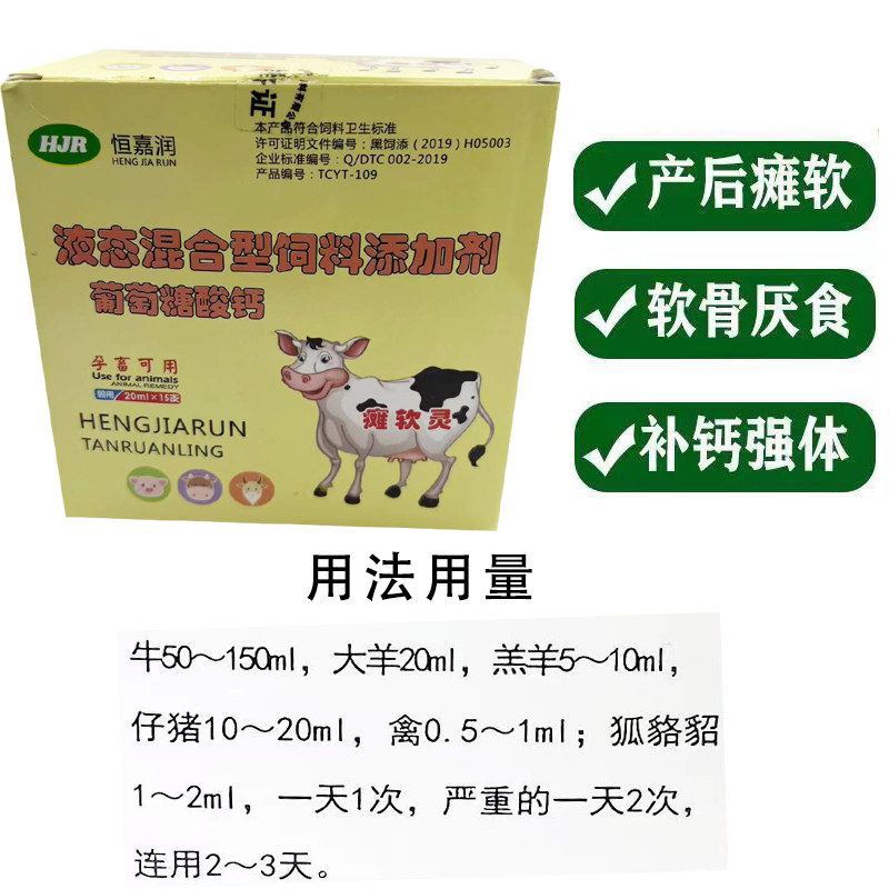 📚 瘫软灵站立钙葡萄糖酸钙口服液兽用生产瘫痪佝偻缺钙软骨病畜禽用