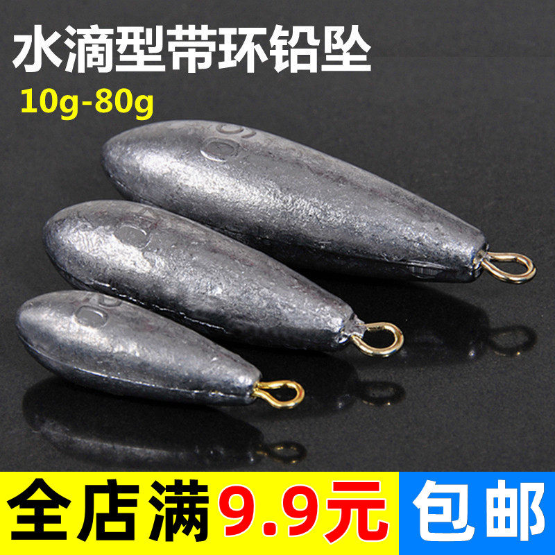📚 柳叶形带环铅坠铅坨铜环水滴形铅坠抛竿海竿路亚串钩铅坠挂铅钓坠