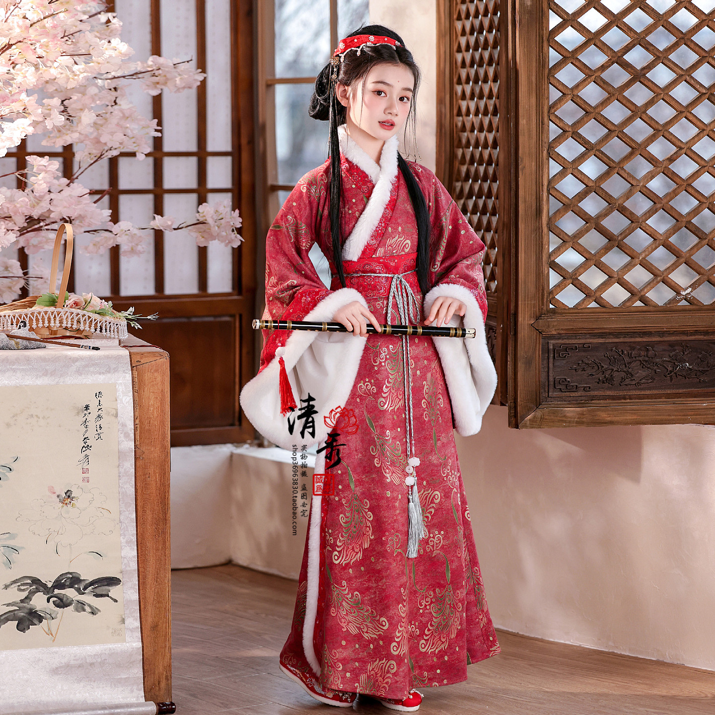 📚 女童汉服2026新款儿童古装战国袍魏晋风冬季唐装中国风拜年演出服