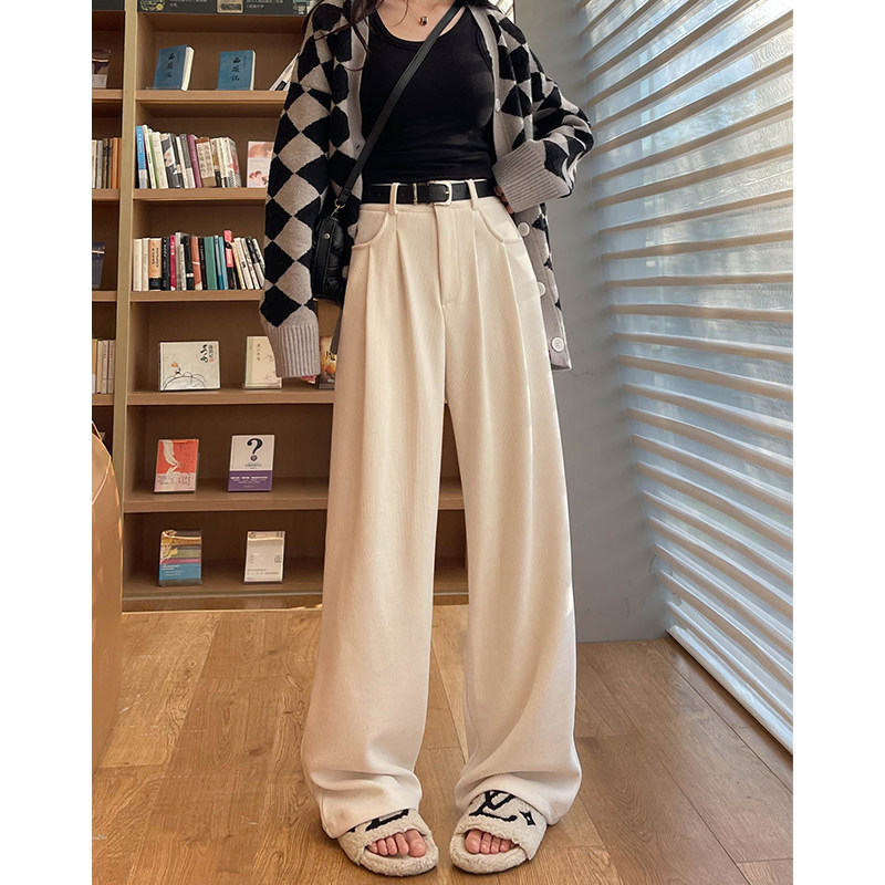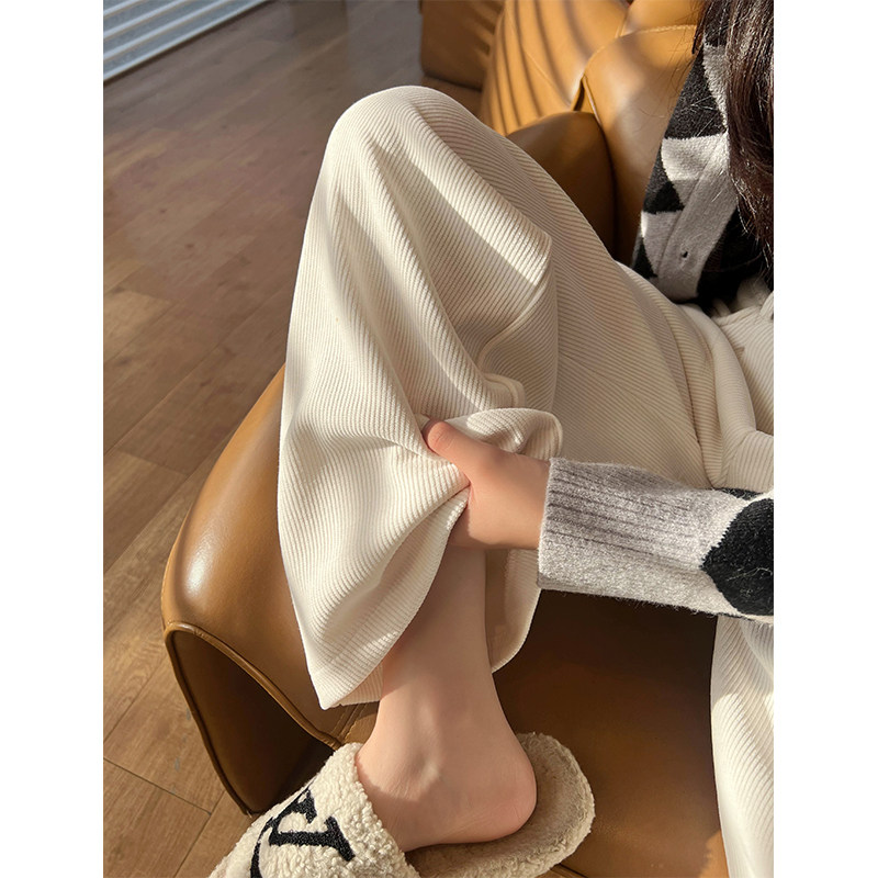 📚 白色裤子女2025新款爆款秋冬宽松加绒针织裤雪尼尔灯芯绒阔腿裤子