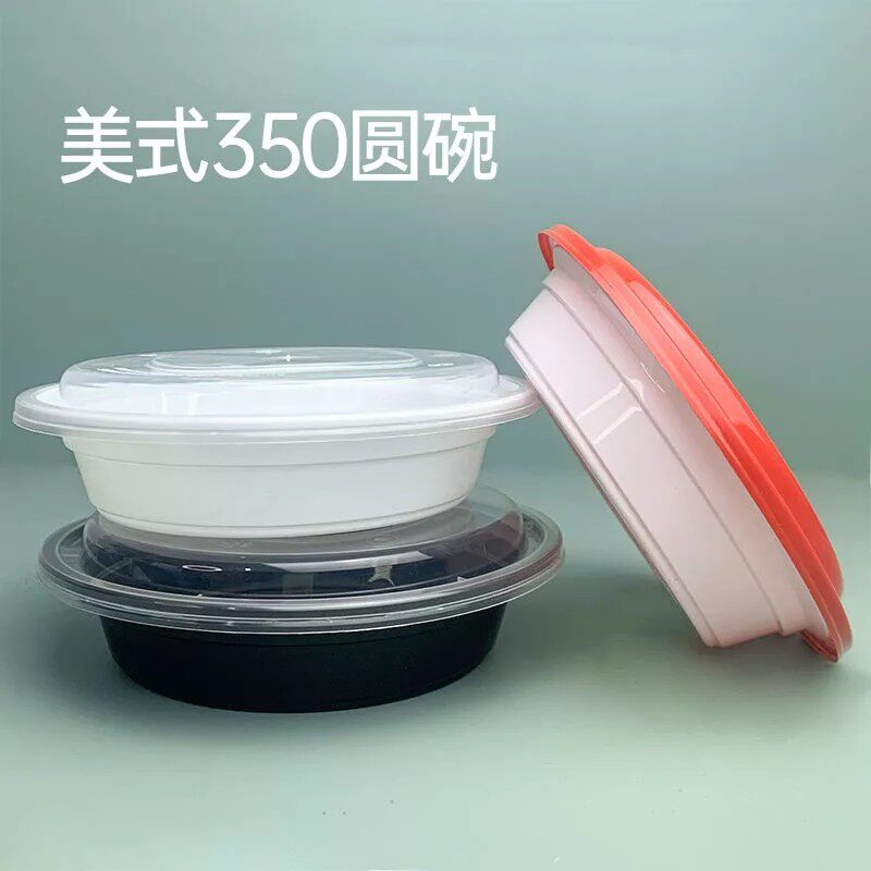 📚 350小碗菜专用打包盒一次性圆形美式圆凸盖 凉糕盒加厚外卖小菜盒