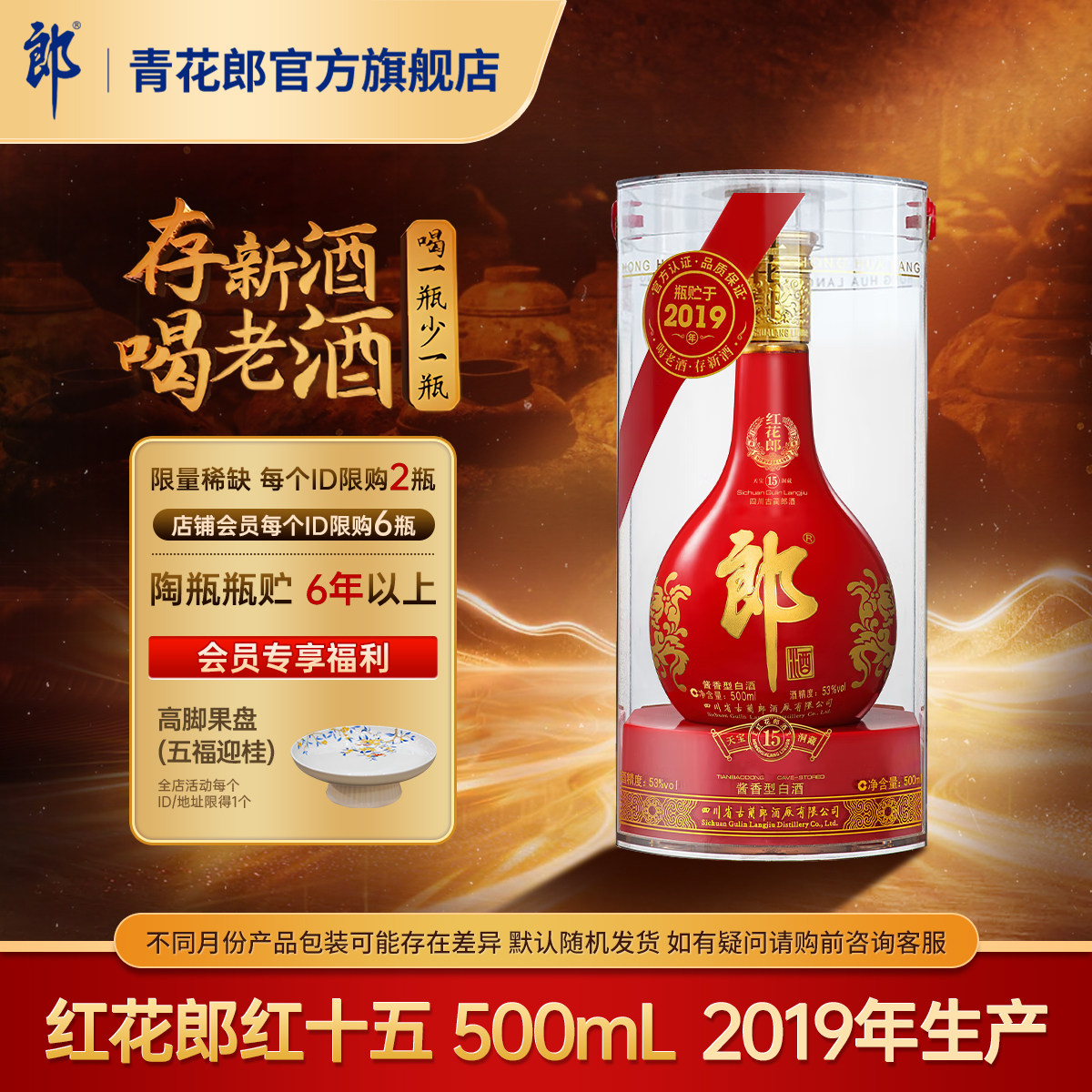 📚 郎酒[2019年产]红花郎红十五53度酱香型白酒500mL官方旗舰店正品
