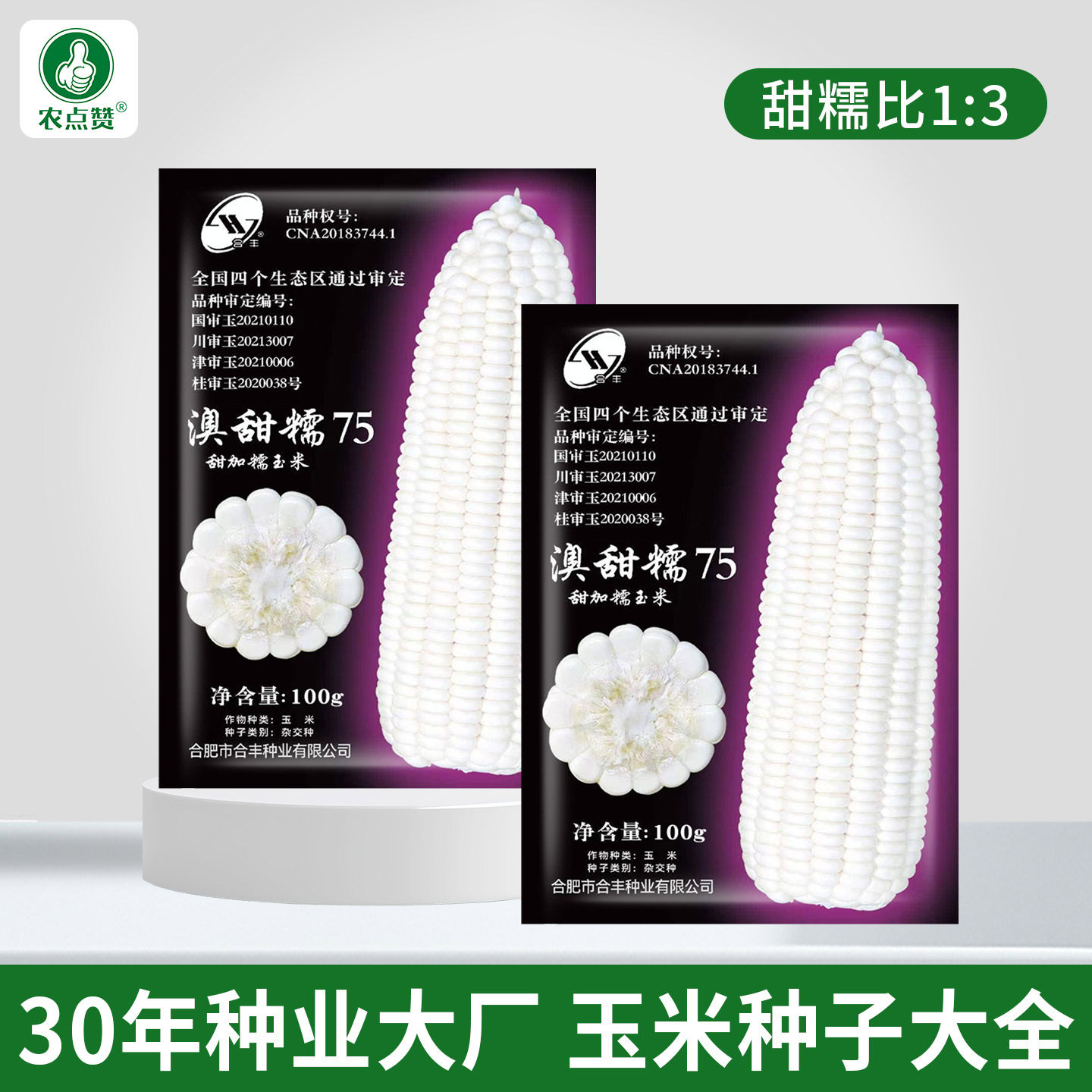📚 大田白玉米种子澳甜糯75官方正品国审糯玉米种籽黏杂交苞包谷籽种
