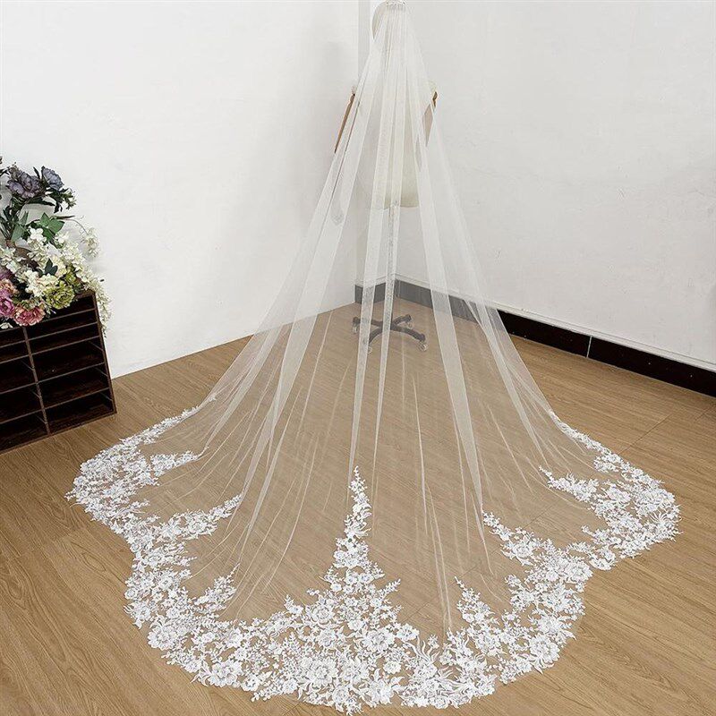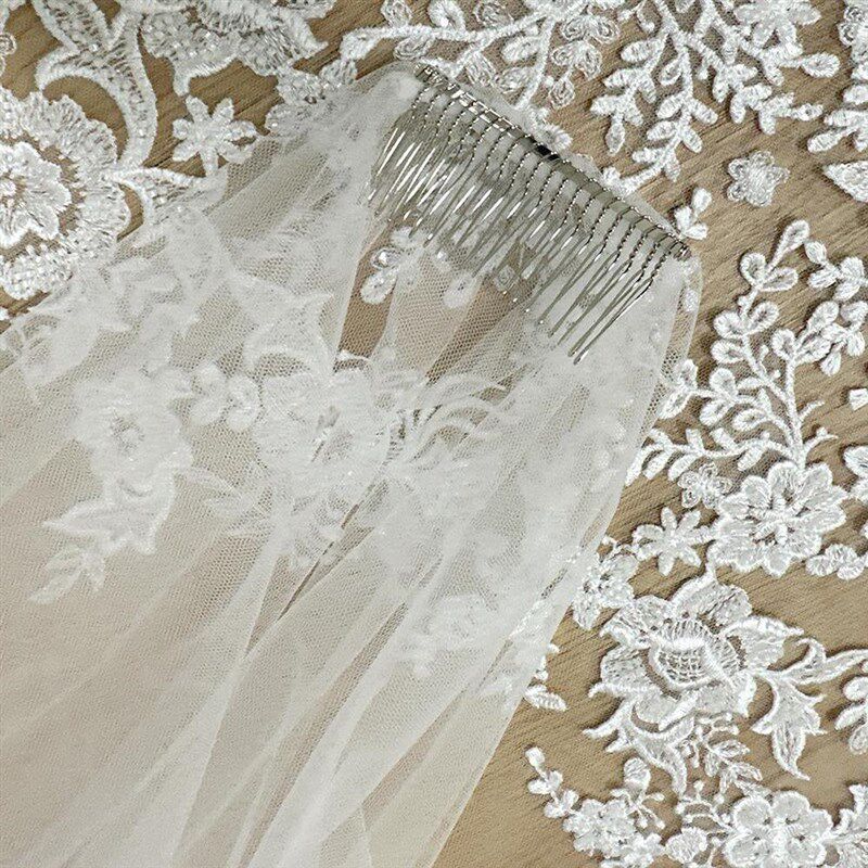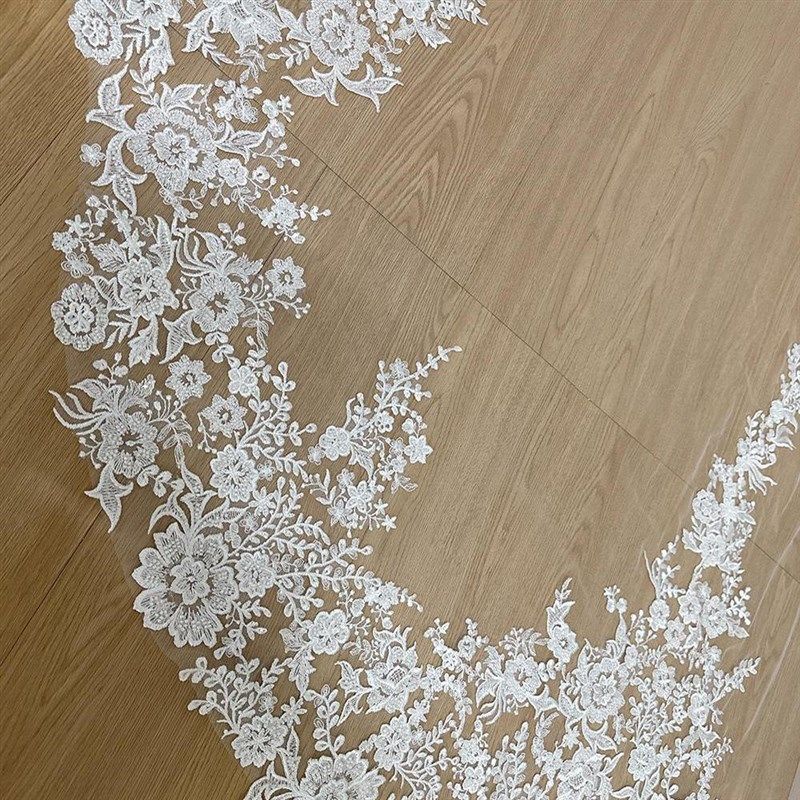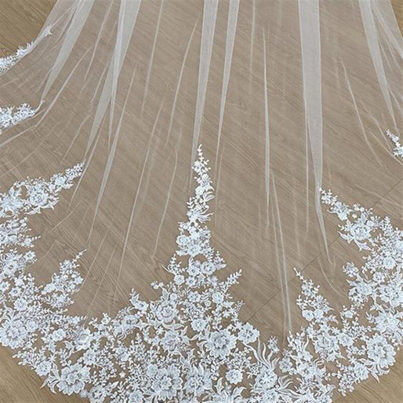 📚 新娘结婚重工钉珠亮片蕾丝头纱高级感扇形长拖尾主婚纱拍照头饰