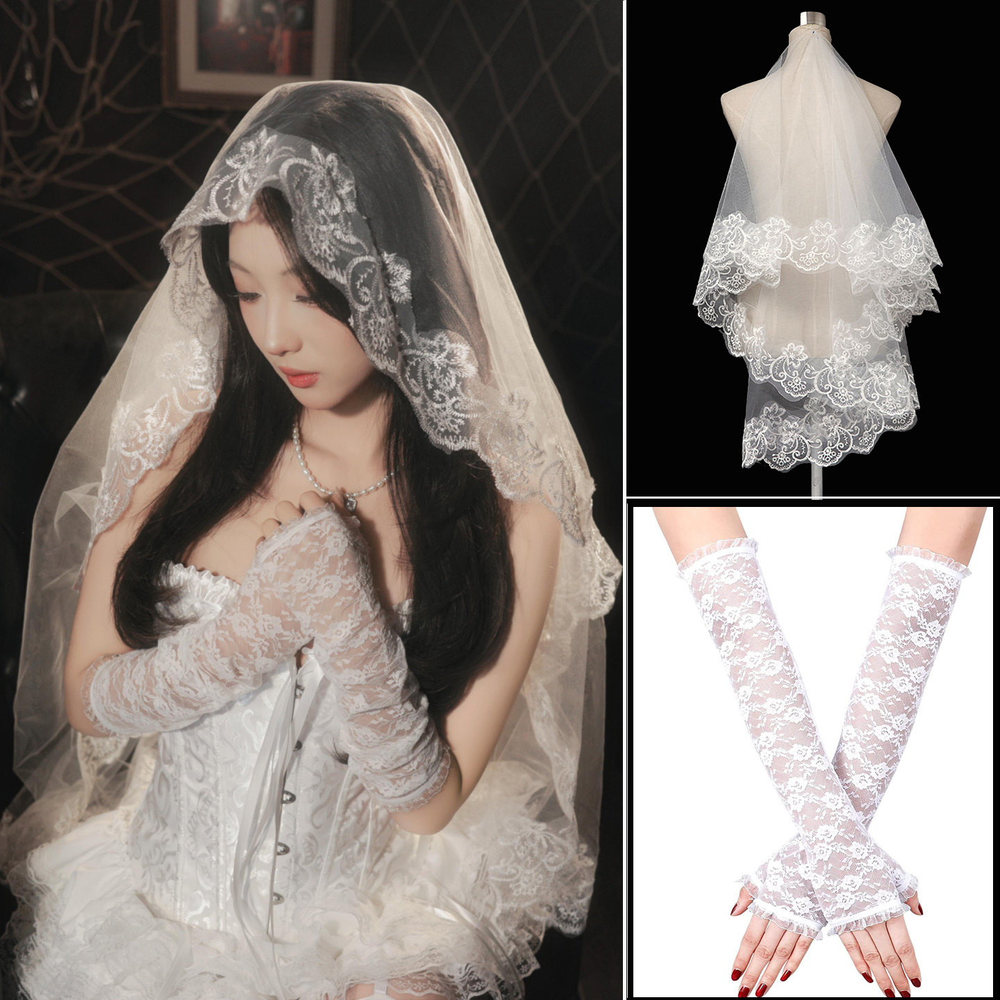 📚 法式洛丽塔Lolita白色蕾丝头纱女新娘优雅高级感写真拍照cos头饰