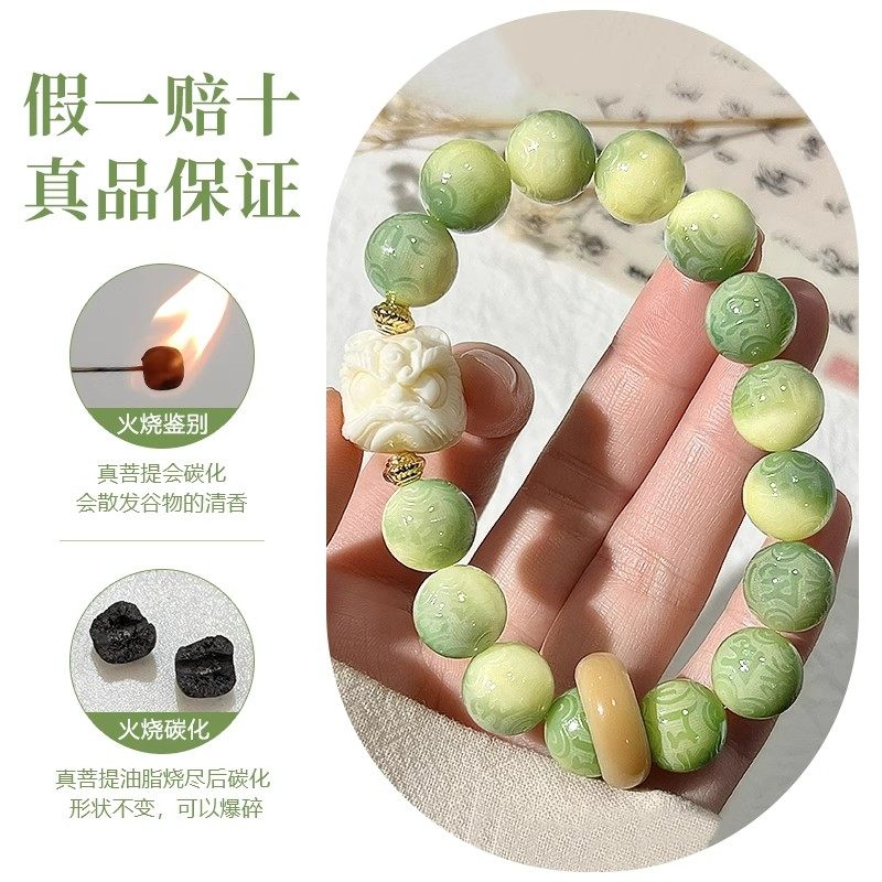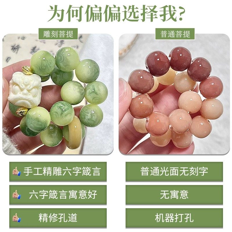 📚 真品小青柠菩提手串男款盘玩六字箴言菩提子文玩佛珠醒狮手链国潮