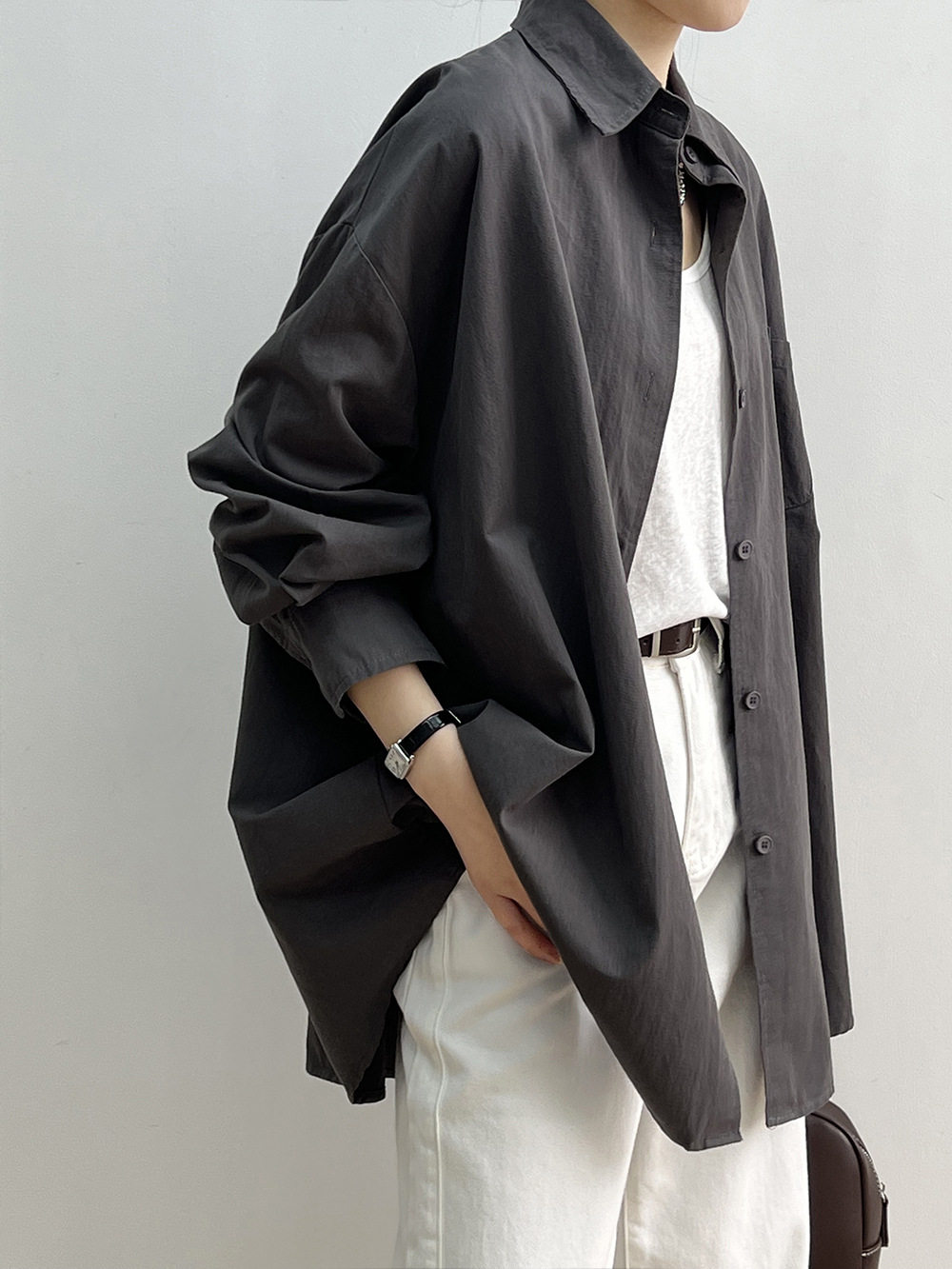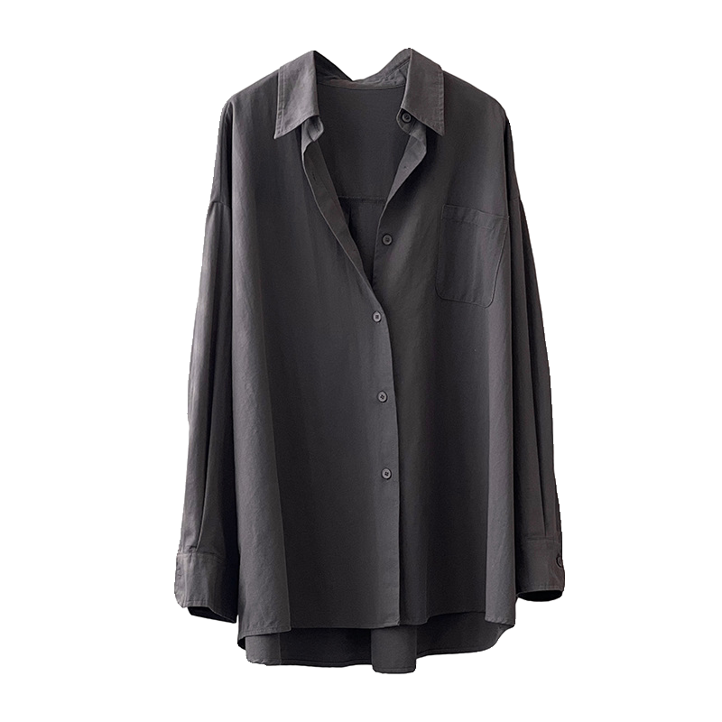 📚 慵懒风宽大版衬衫外套女2024春天BF男友风中长款休闲纯棉衬衣外搭