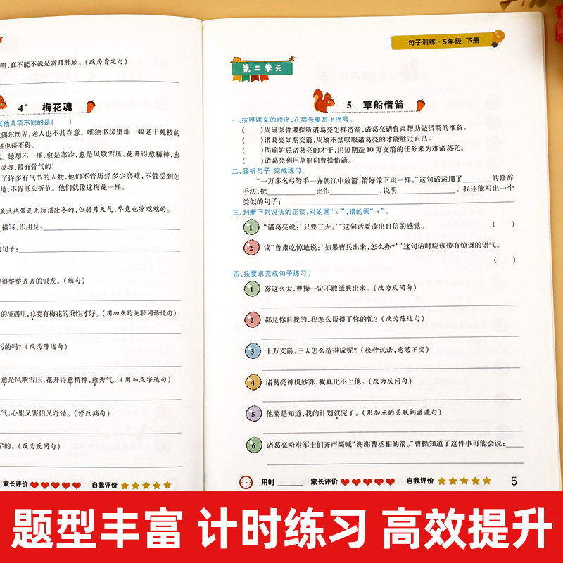 📚 句子训练专项练习五年级下册同步练习册小学生人教版反问句陈述句小学语文修辞手法组词造句大全照样子写句子把字句被字句仿写基础