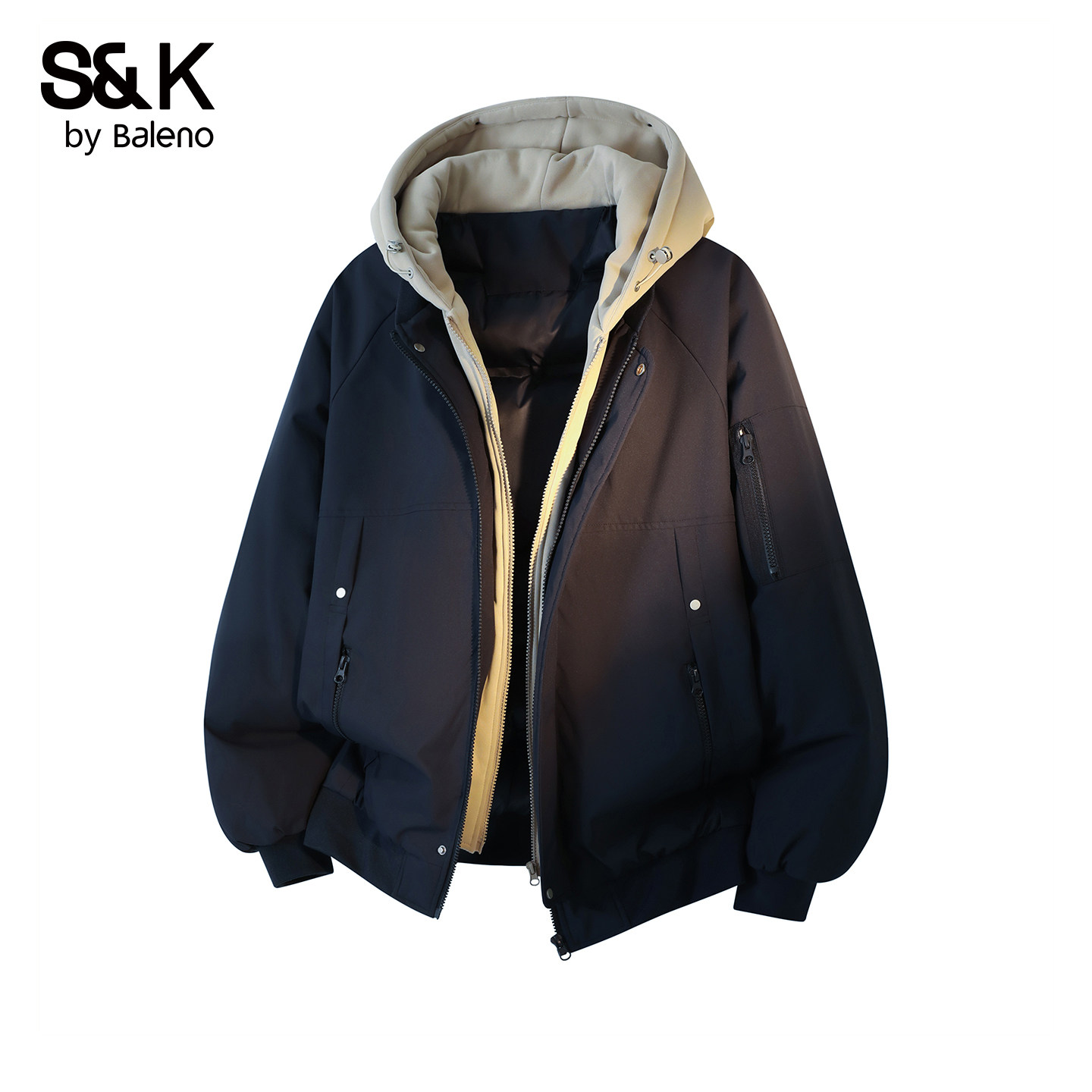 📚 班尼路SK休闲风假两件连帽棉衣男士冬季加厚保暖菱格纹棉服外套YS
