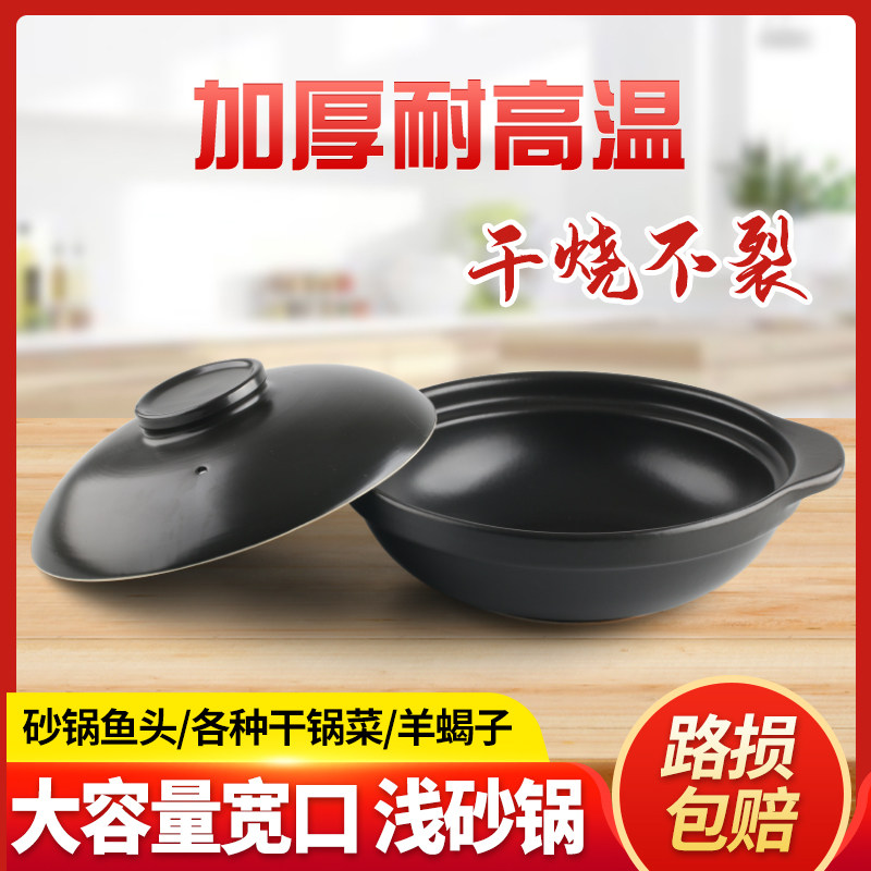 📚 煲仔饭砂锅家用炖锅耐高温小火锅石锅大号商用陶瓷干烧浅口大沙锅