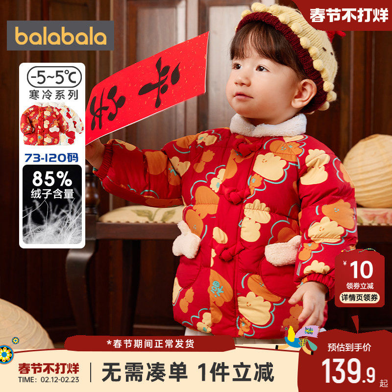 📚 巴拉巴拉婴儿羽绒服小童宝宝新年大红色短款外套男童女童秋冬童装