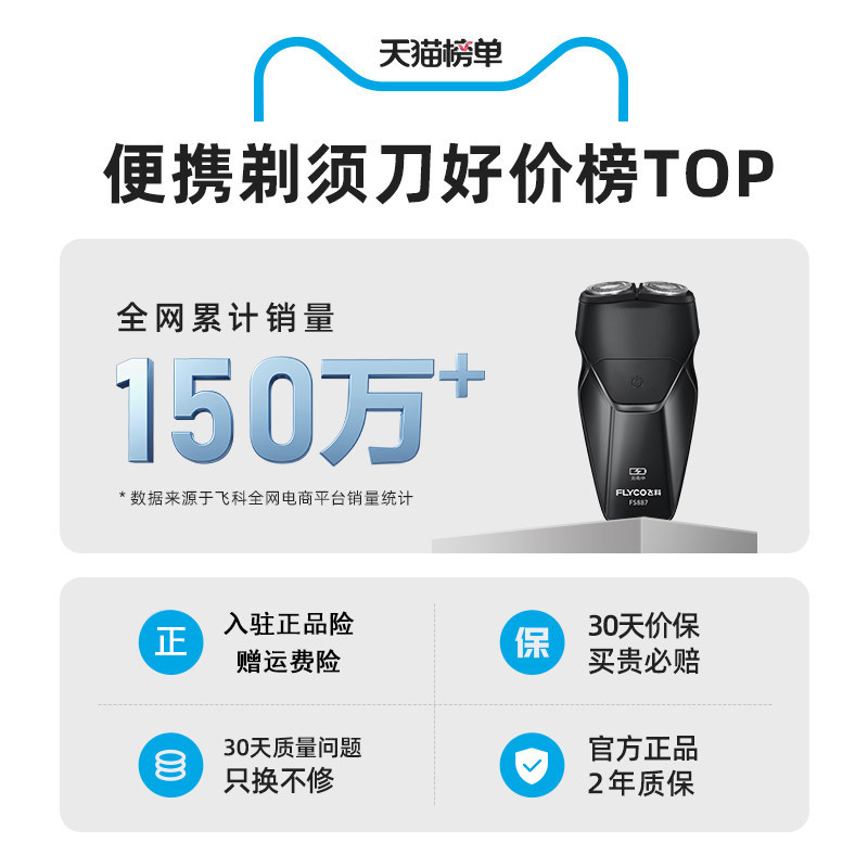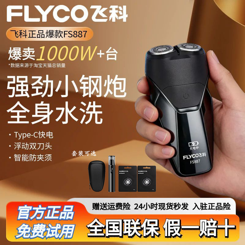 📚 飞科电动剃须刀男士刮胡刀充电便携胡须刀全身水洗刮胡子刀FS887