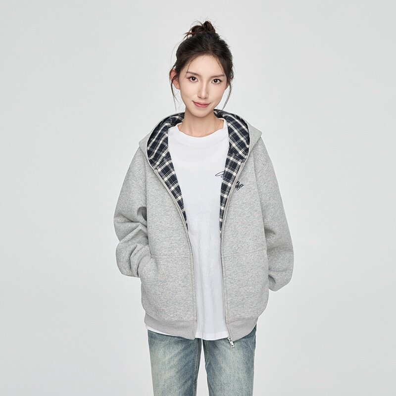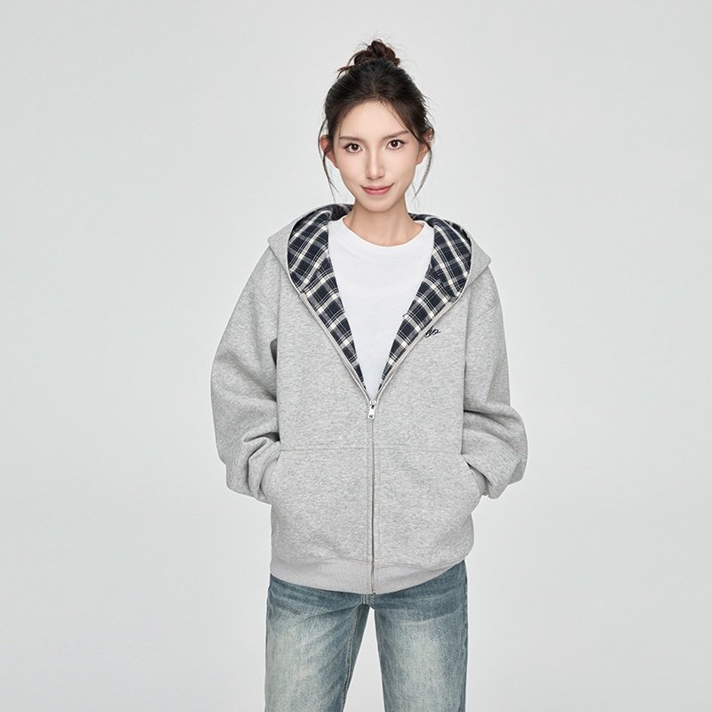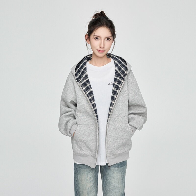 📚 KSXN 格纹内里开衫卫衣美式设计感百搭宽松情侣外套