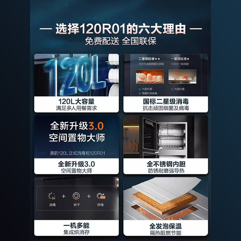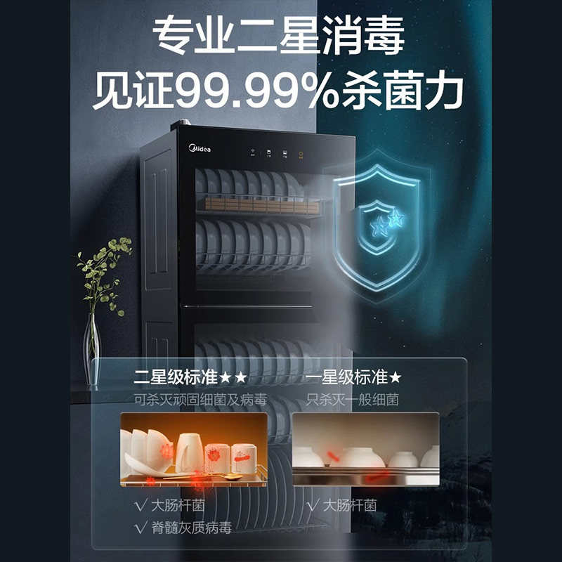 📚 美的消毒柜家用小型立式120R01厨房碗筷消毒碗柜120L厨具家庭式