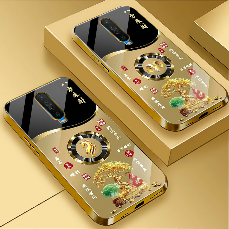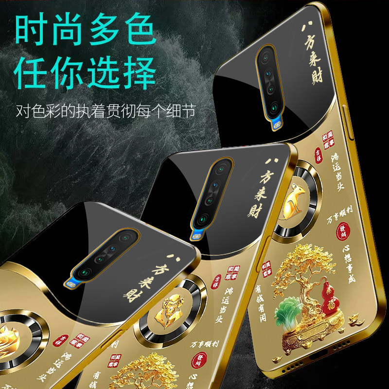 📚 适用于红米k30手机壳电镀金玻璃简约新款男女轻奢生肖保护套镜面时尚红米k30潮牌硅胶手机套高颜值商务边外壳