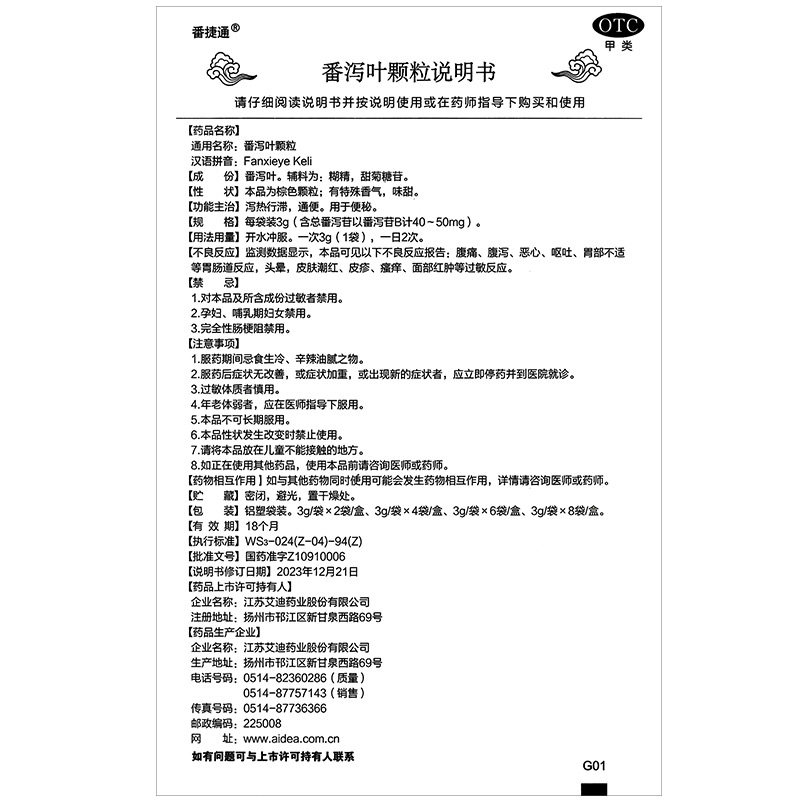 📚 包邮】艾迪番泻叶颗粒无蔗糖3g*6袋番捷通 用于便秘通便行滞泻热