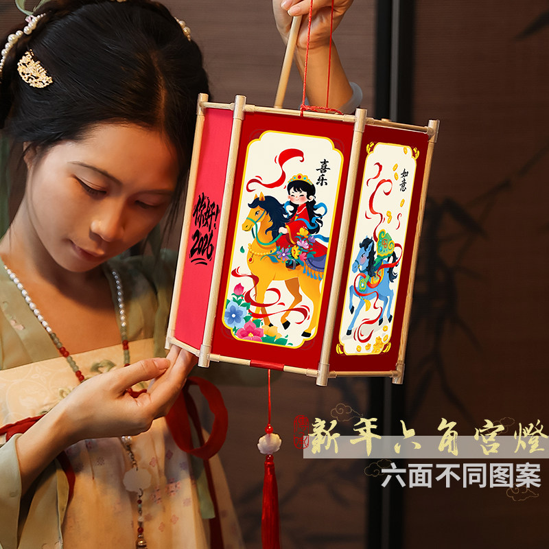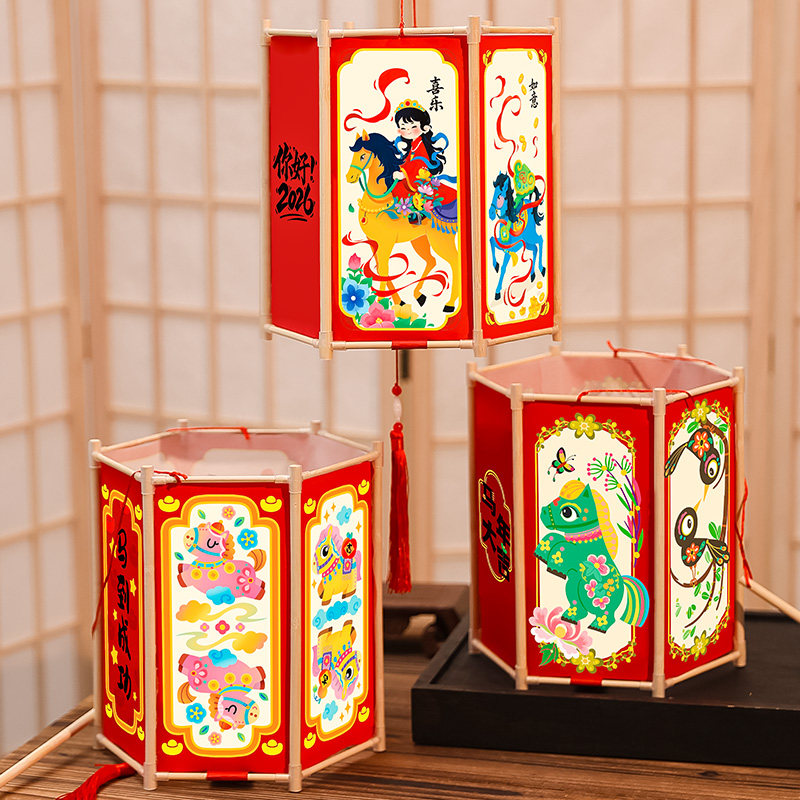 📚 2026马年元旦节手工灯笼diy材料半成品幼儿园小学生手提六角宫灯