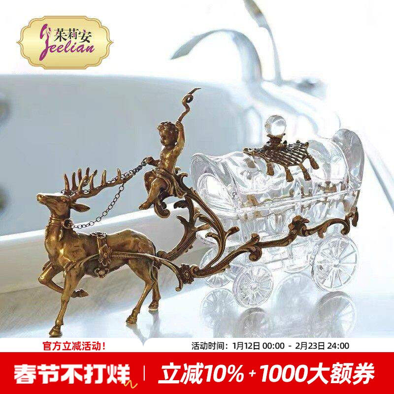 📚 茱莉安法式复古别墅桌面摆件小鹿拉车饰品盒糖果盒进口水晶盒子