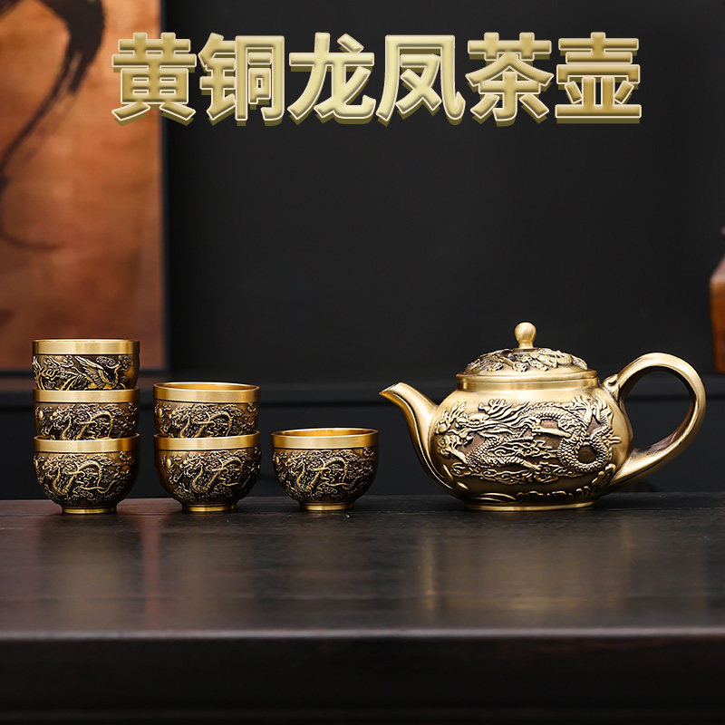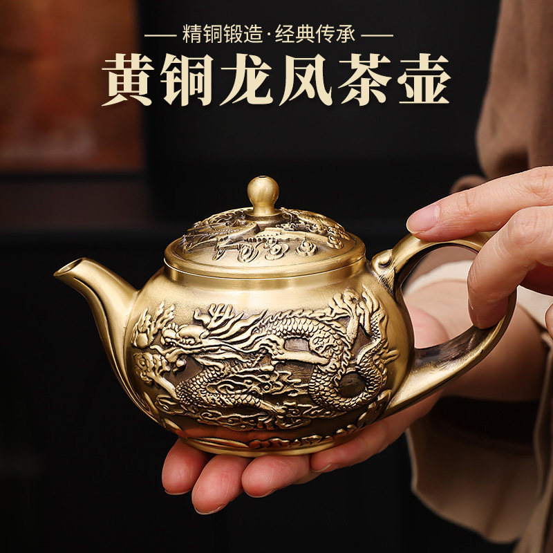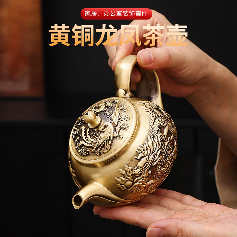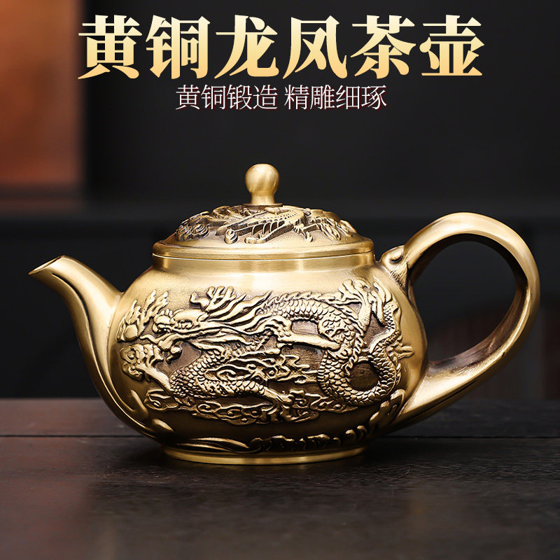 📚 黄铜龙凤呈祥茶壶茶具供水壶供佛拜天公茶壶供水杯子婚前供奉用品