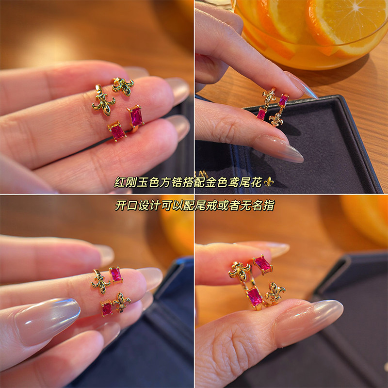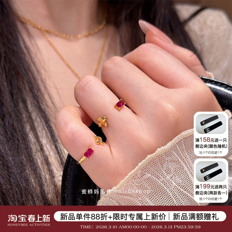 📚 【上新88折】蜜蜂妈手作复古宫廷红刚玉鸢尾花戒指女小众开口指环
