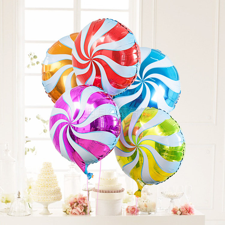 📚 18寸棒棒糖气球卡通儿童圆形糖果铝箔铝膜生日圣诞新年装饰氦气球