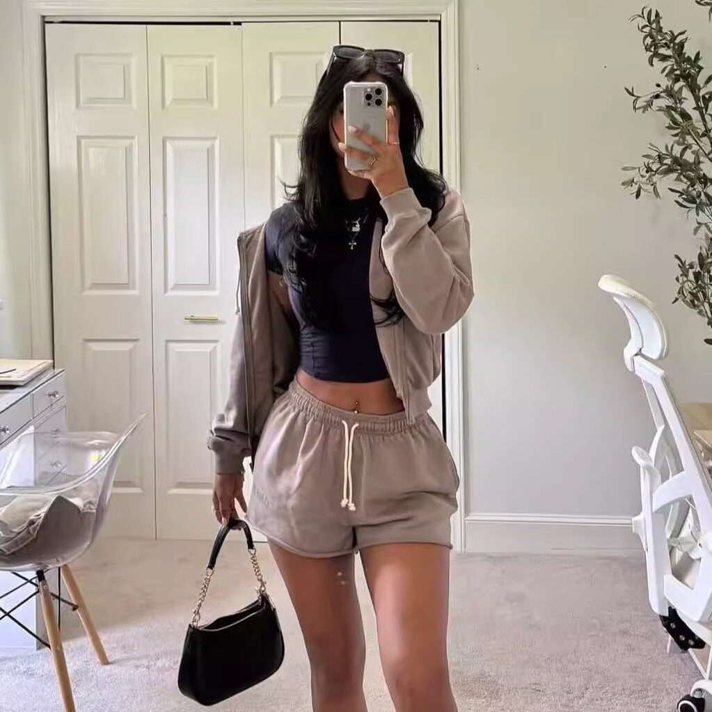 📚 超轻薄柔软TTWOLVES女士全棉砂洗做旧健身运动超宽松透气短裤E37
