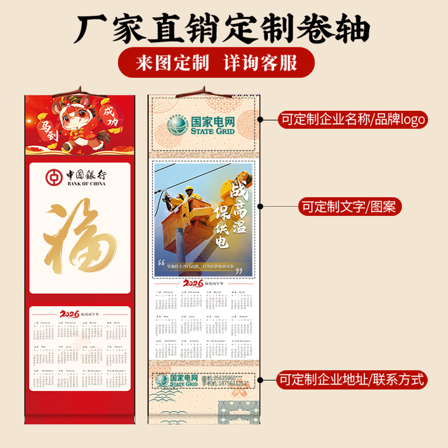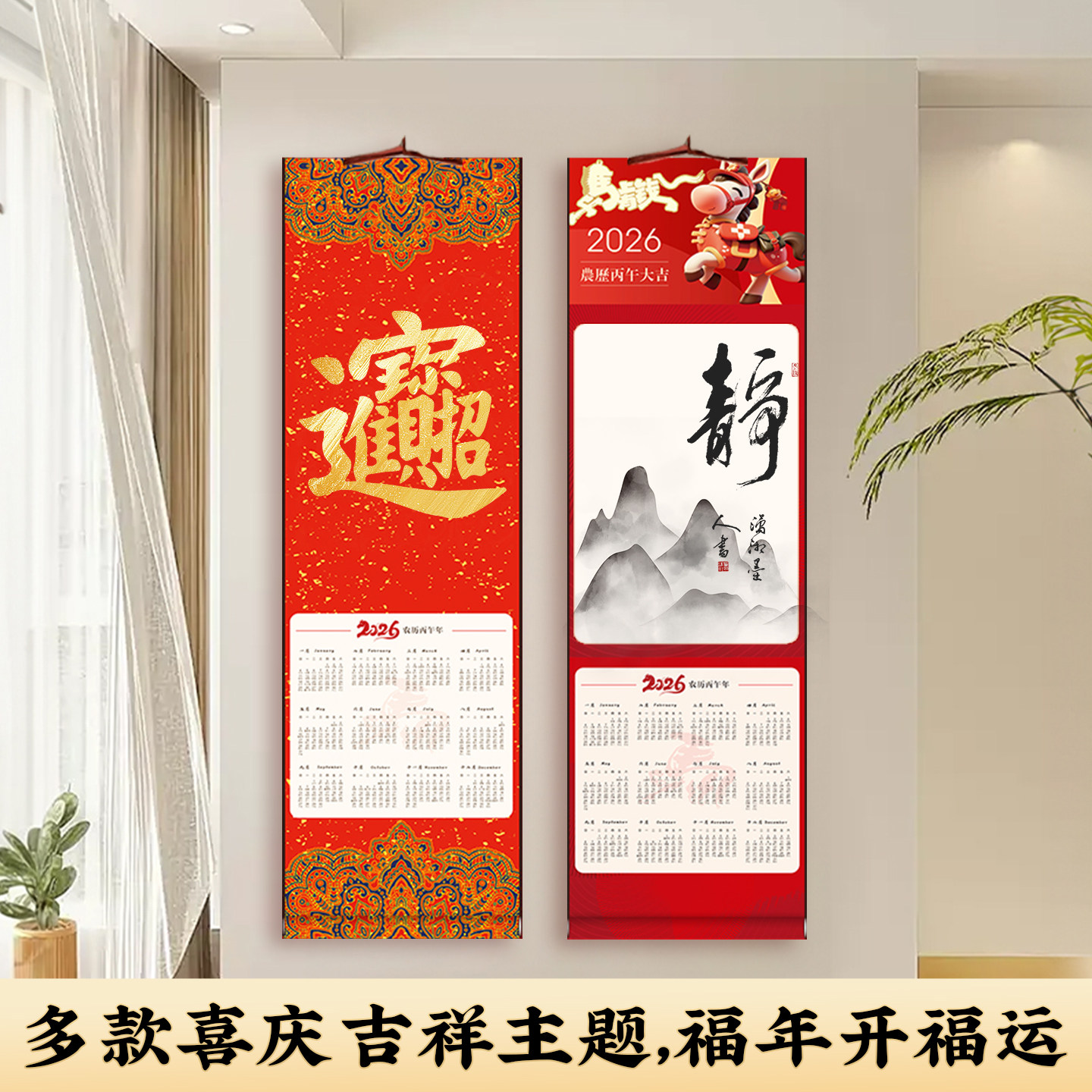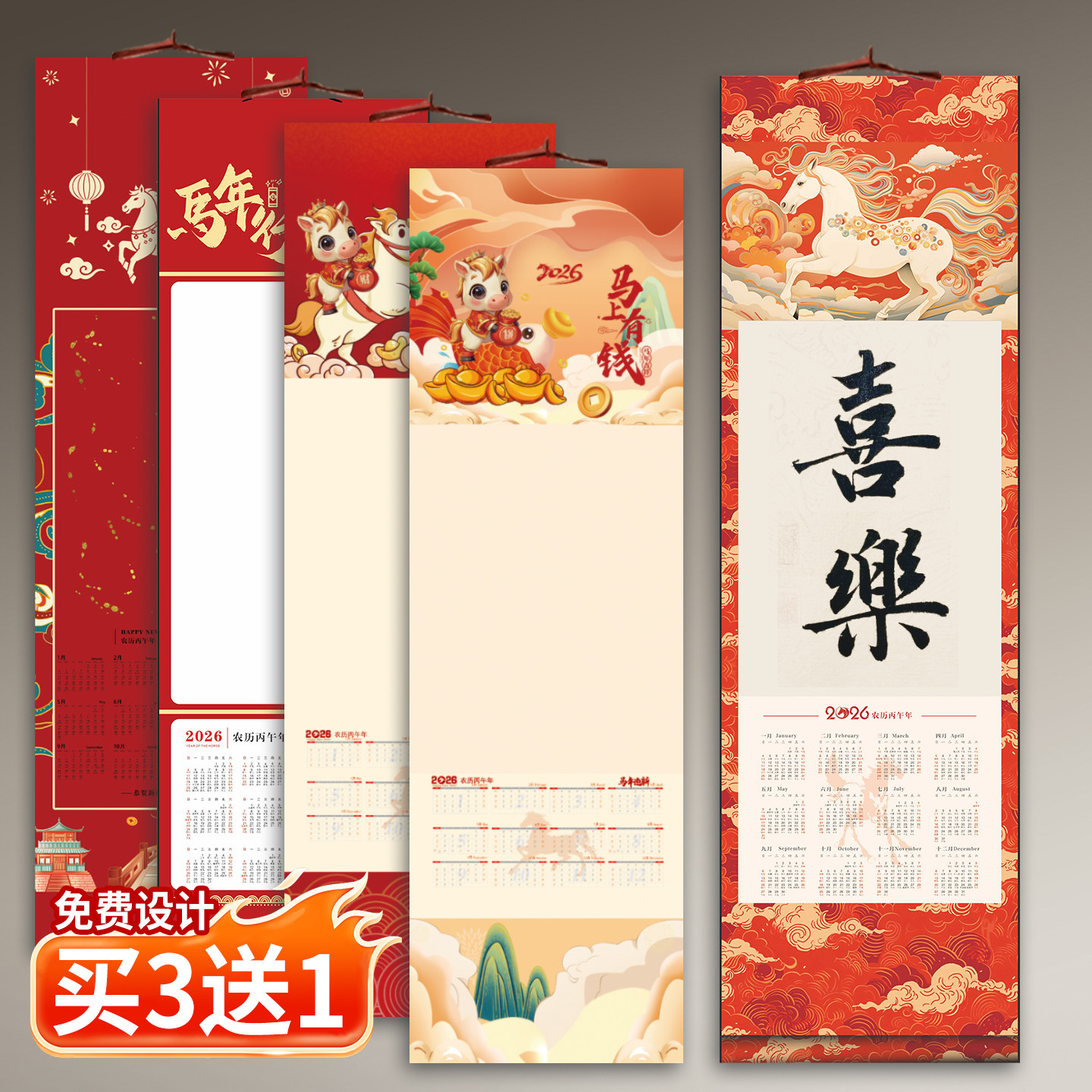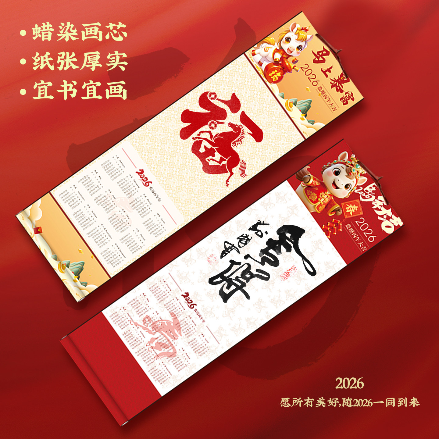 📚 2026文创空白宣纸挂历马年日历挂轴手写福字diy免装裱手工卷轴半生熟空白画轴毛笔字书画书画创作作品纸春节