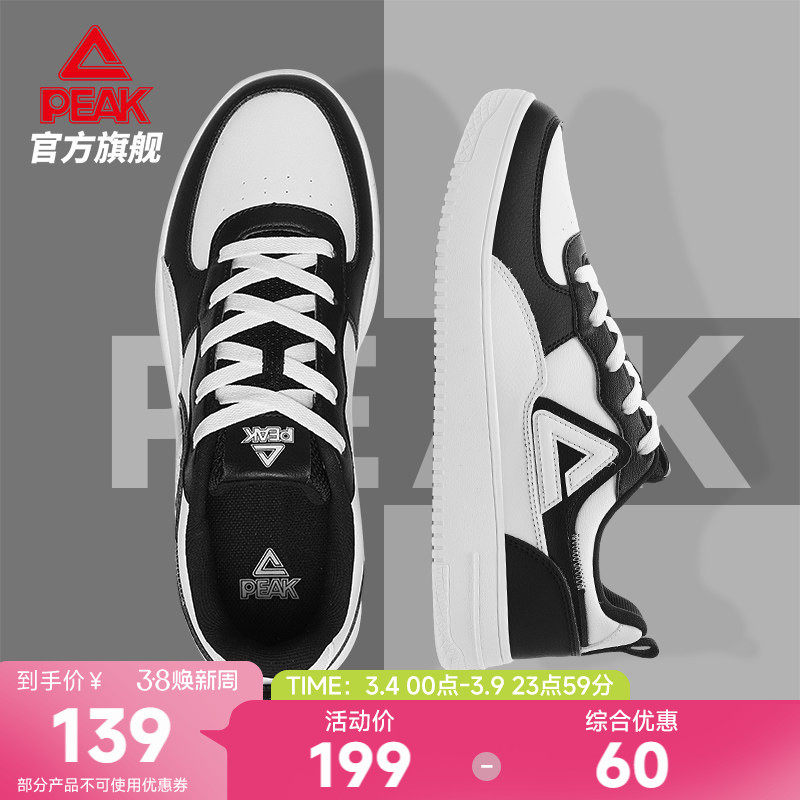 📚 匹克板鞋男春季新款男鞋皮面休闲鞋子女鞋男士黑白低帮厚底运动鞋