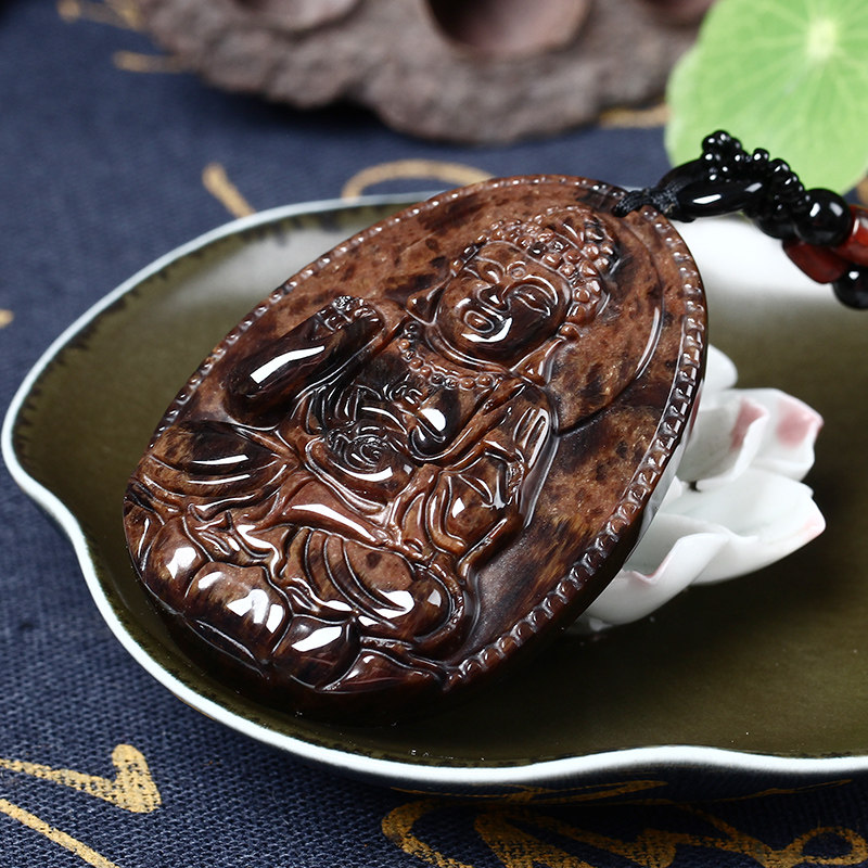 📚 天然红竹石金丝红曜石阿弥陀佛吊坠生肖属狗属猪守护神本命佛