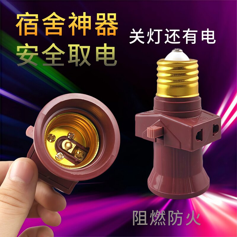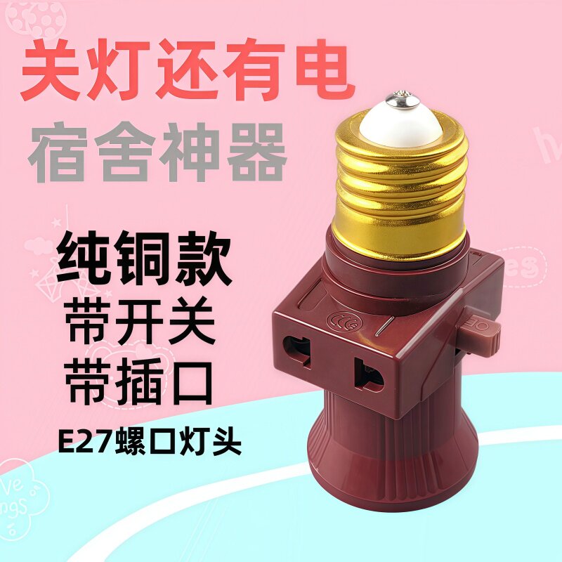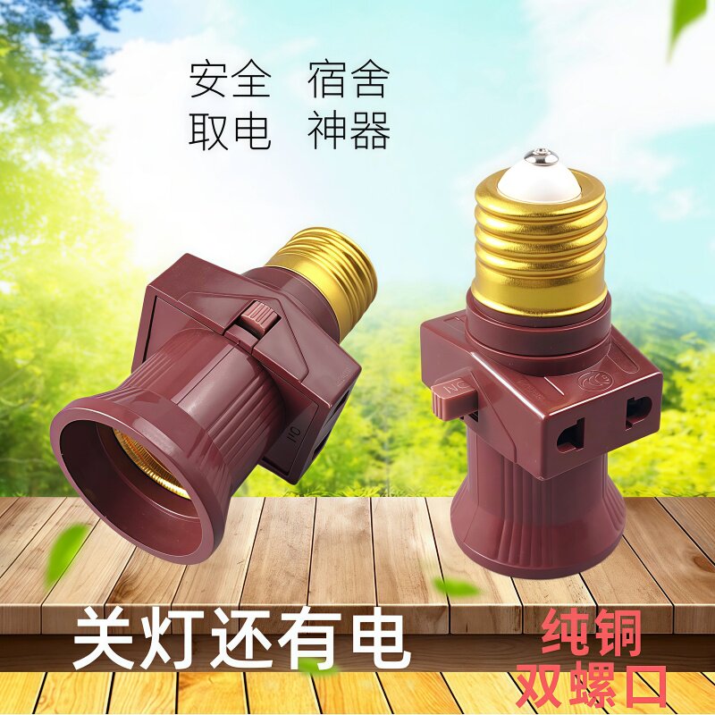 📚 铜件E27带开关插座分火灯头螺旋灯口宿舍螺口工地灯座转换器多用