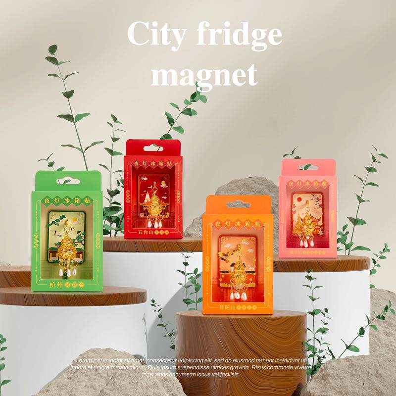📚 杭州灵隐寺普陀山五台山文创发光金属冰箱贴夜光磁吸博物馆纪念品