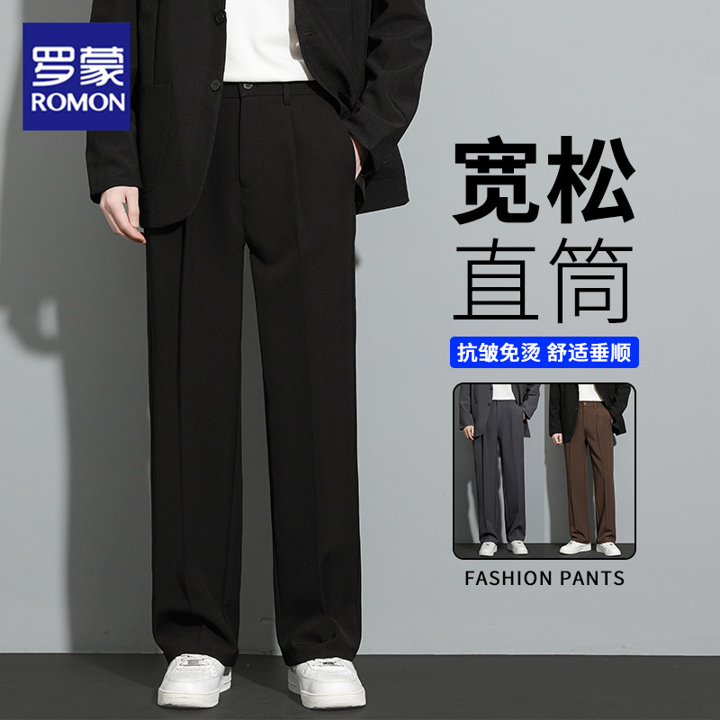 📚 罗蒙黑色西装裤男士春季垂感宽松直筒小西裤潮流休闲高级阔腿长裤